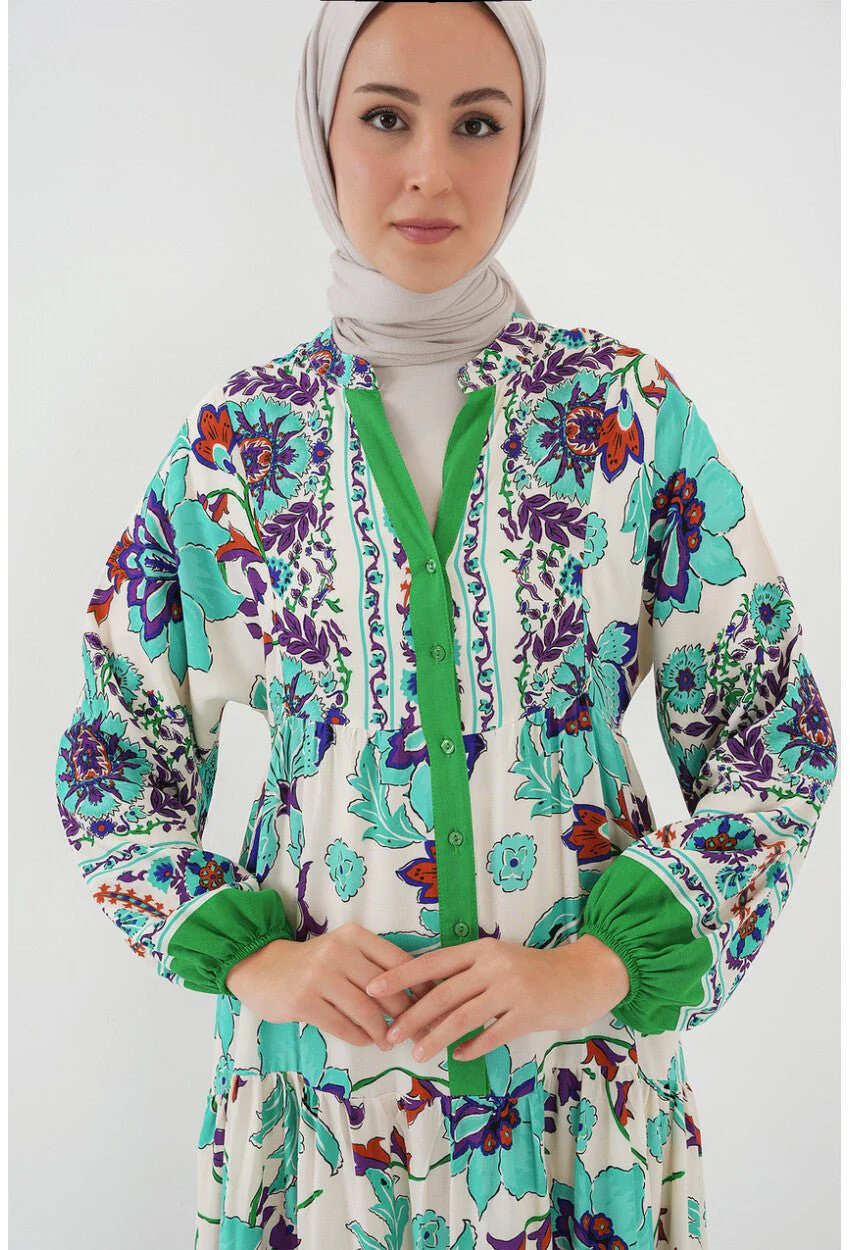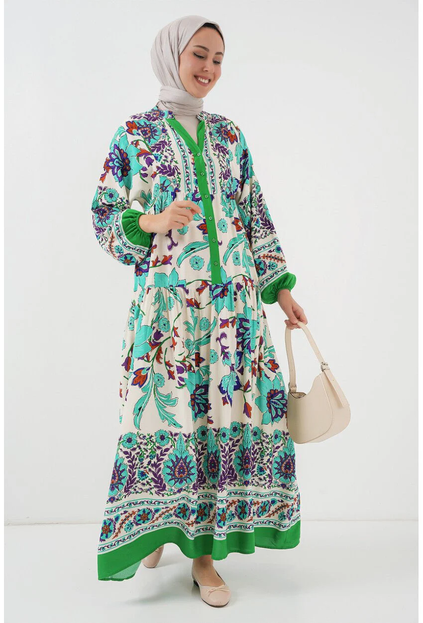 Cette robe longue à motif authentique est idéale pour un usage quotidien ou pour des occasions décontractées. Sa coupe fluide et sa matière légère offrent un porté confortable tout au long de la journée.