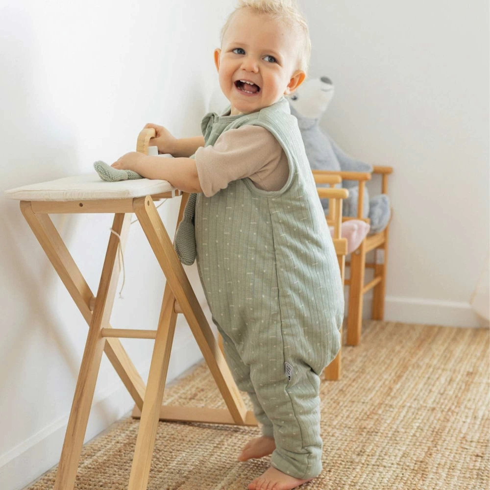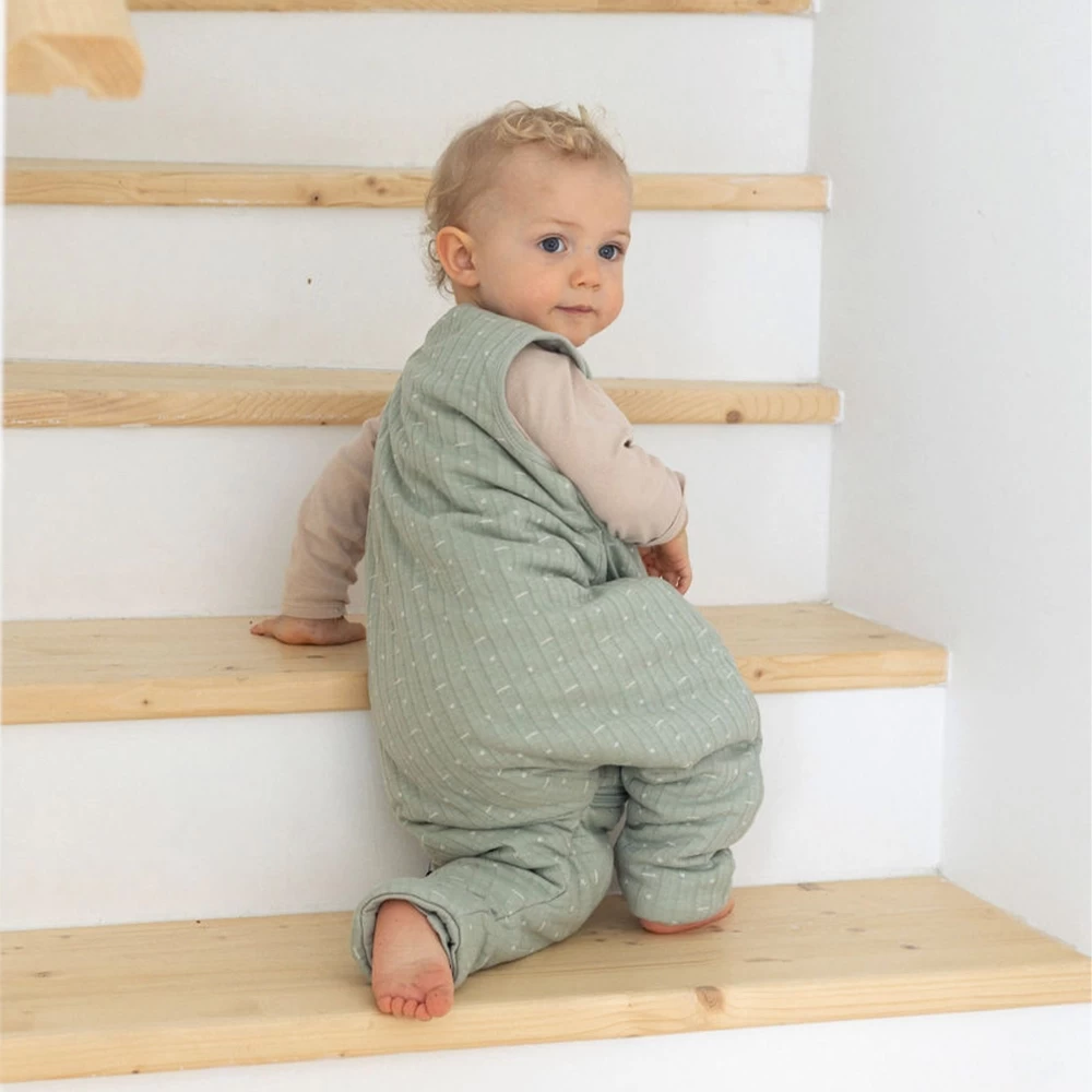 Le design sans manches et les jambes séparées assurent une liberté de mouvement complète, permettant à bébé de gigoter, ramper ou marcher sans aucune restriction. Contrairement aux turbulettes traditionnelles, ce modèle offre un véritable équilibre entre chaleur et indépendance, idéal pour les enfants curieux et actifs qui souhaitent explorer leur environnement même pendant la nuit.