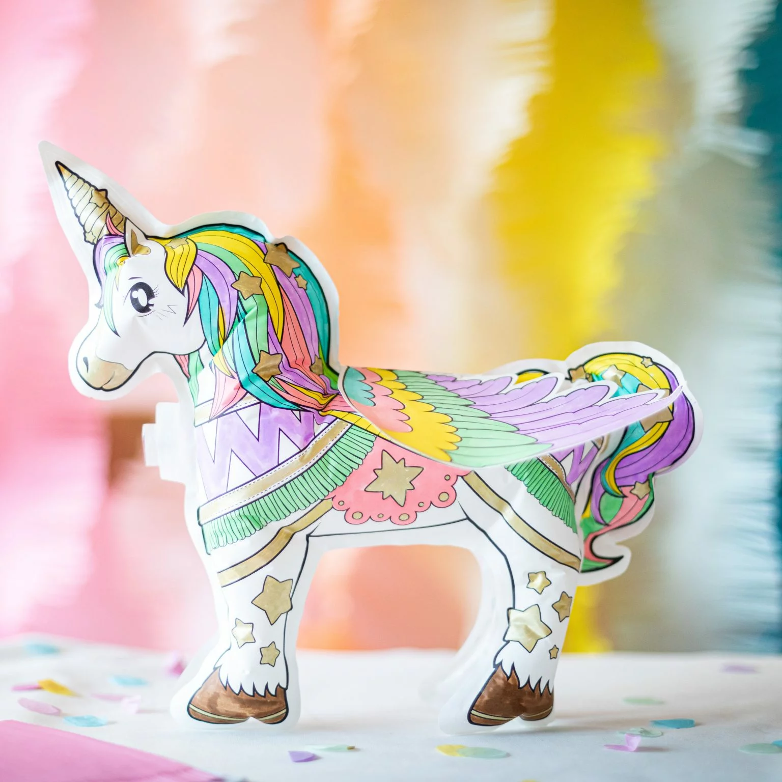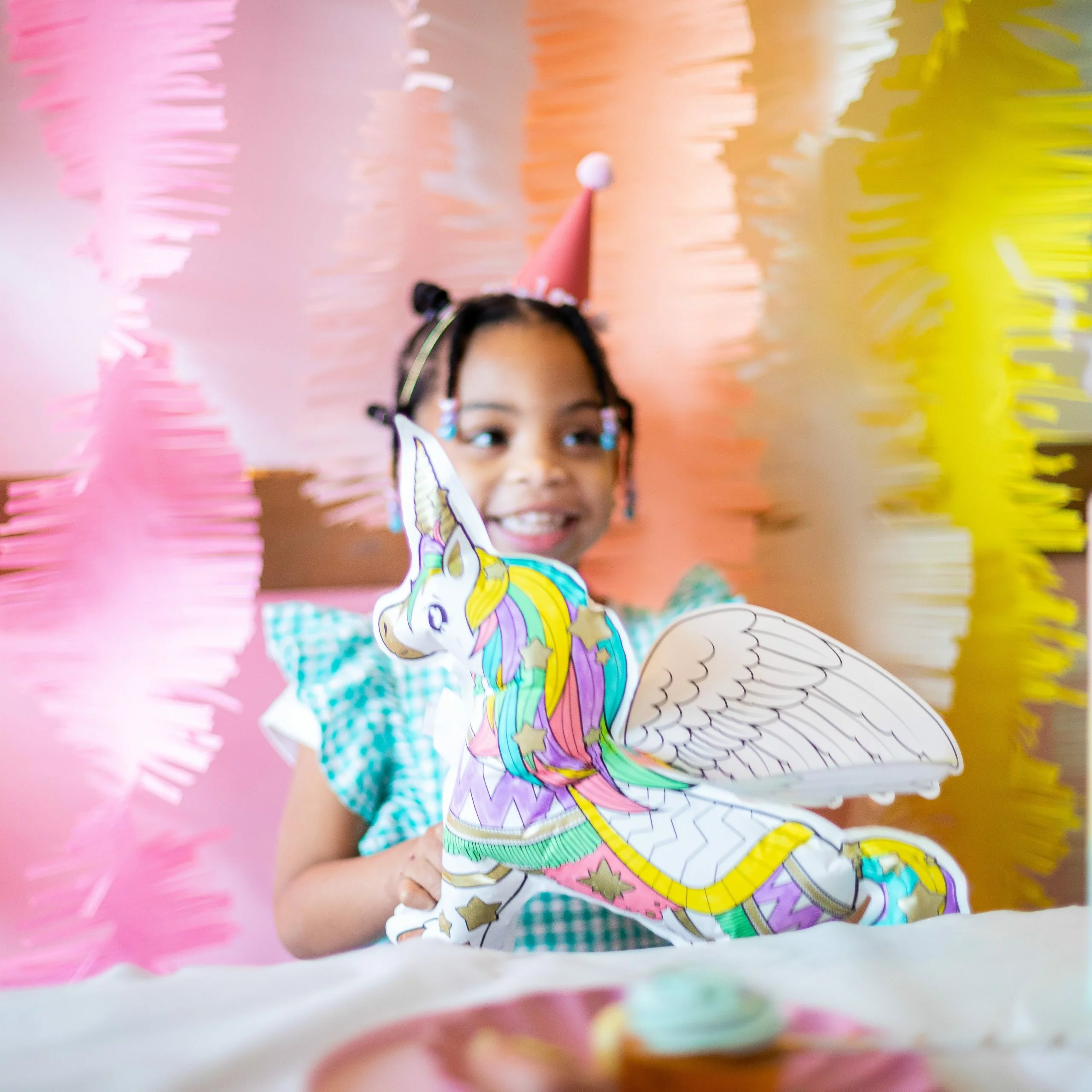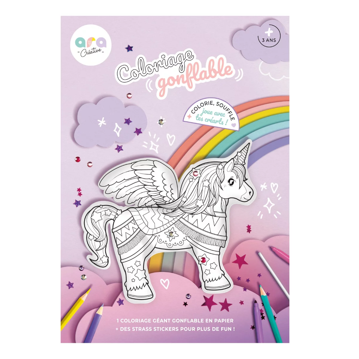 La Licorne géante et ses ailes à colorier feront sensation en jouet ou en jolie décoration.