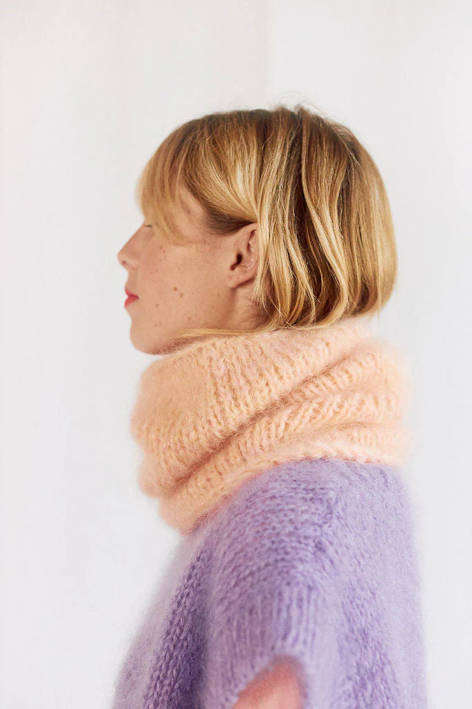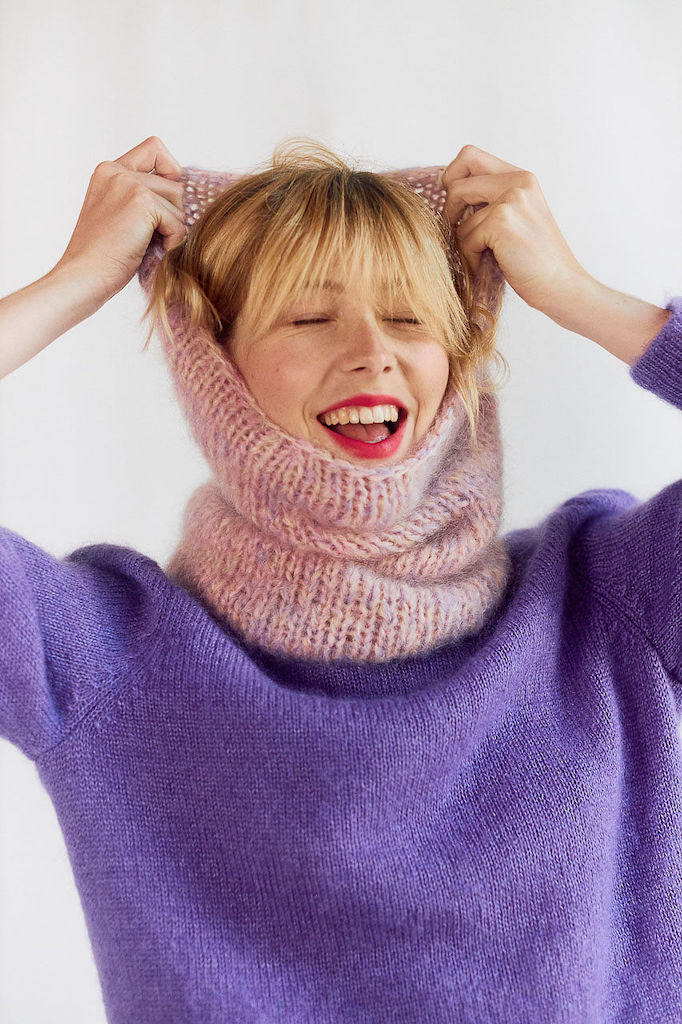 Grâce aux aiguilles circulaires, vous démarrerez le tricot avec facilité, et pour votre premier ouvrage, vous tricoterez un snood dans notre mohair tout doux.