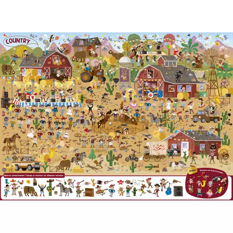 Les enfants peuvent s’amuser à chercher et retrouver 10 personnages récurrents présents dans chaque scène musicale, leur permettant de suivre les aventures de ces compagnons au fil des pages. Ces personnages apportent une touche d’humour et de continuité, et aident les petits lecteurs à développer leurs compétences d’observation et leur concentration.