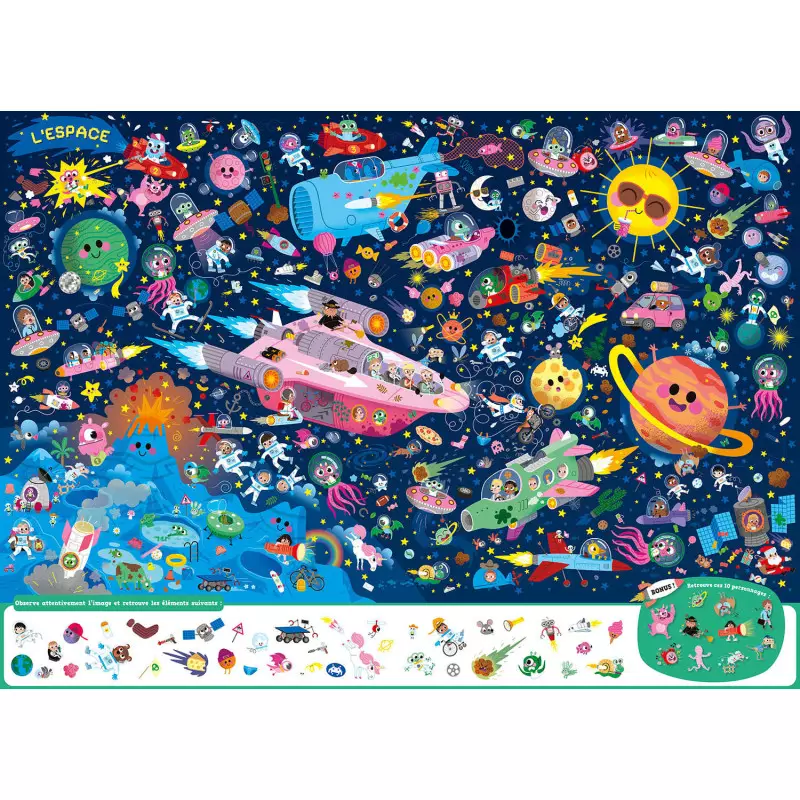 Plongez dans un monde fascinant avec le Cherche et Trouve Géant de la marque Auzou, qui invite les petits aventuriers à explorer des univers enchanteurs et captivants. Découvrez neuf scènes riches en couleurs et en détails, où se côtoient des robots futuristes, des profondeurs mystérieuses de l’océan, et une forêt enchantée pleine de magie. Chaque page offre une expérience unique grâce à des éléments phosphorescents qui illuminent l’imagination des enfants, rendant la recherche encore plus amusante une fois la lumière éteinte.