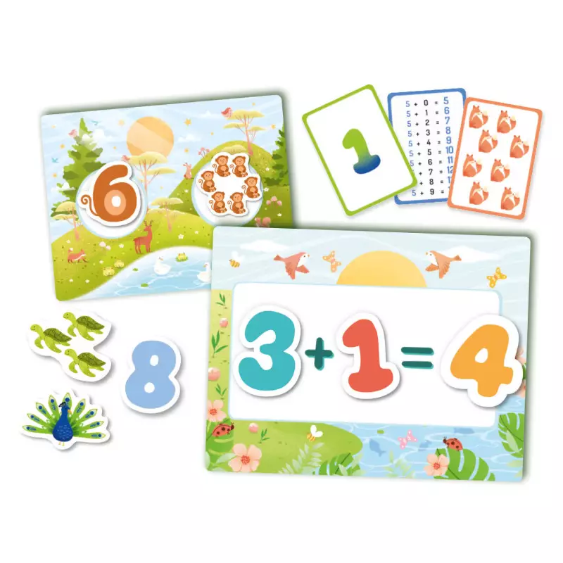 Ce coffret éducatif permet aux enfants de découvrir les chiffres de manière ludique. À travers deux niveaux d’activités, ils associent les chiffres aux nombres d’animaux et commencent à faire leurs premières additions, avec l’aide de cartes-modèles pour guider leur apprentissage.