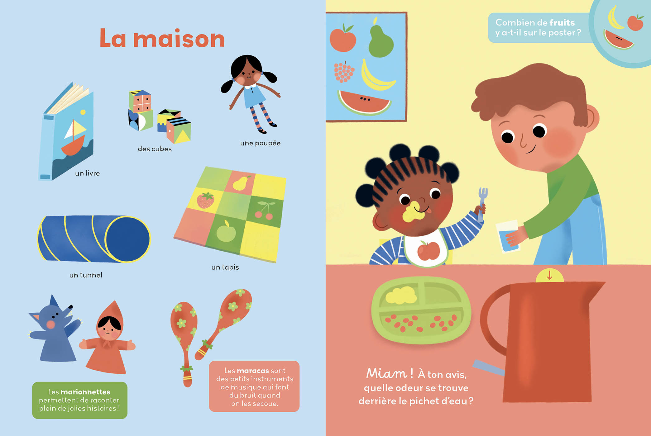 Un livre complet, à la fois éducatif, interactif et sensoriel, qui éveillera tous les sens de votre enfant et l’accompagnera dans ses premières découvertes du quotidien. Une belle idée de cadeau pour apprendre en s’amusant !
