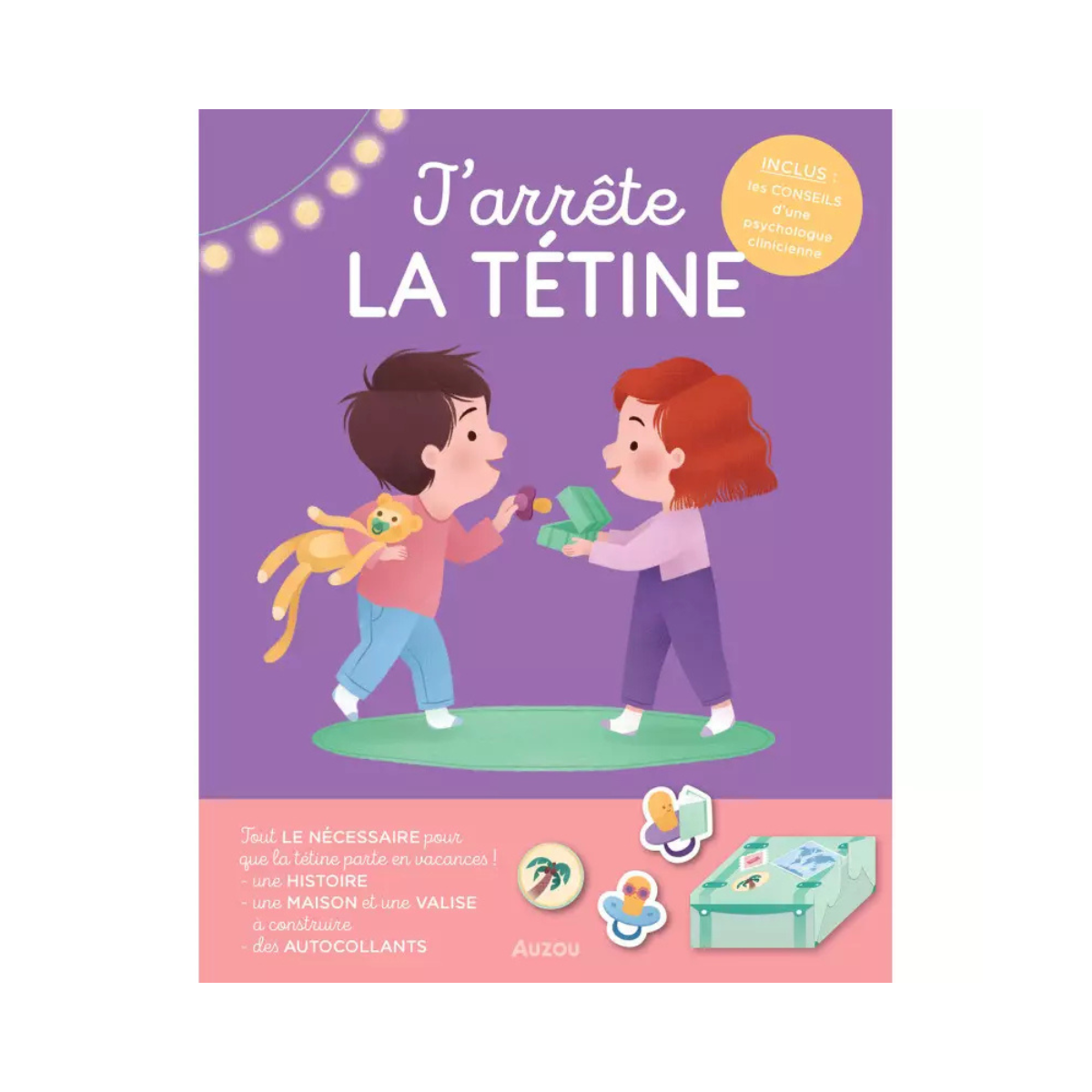 Un livre interactif et rassurant pour aider les enfants à dire au revoir à leur tétine, avec une histoire douce, des activités ludiques (maison, valise, calendrier) et les conseils d’une psychologue pour accompagner les parents.