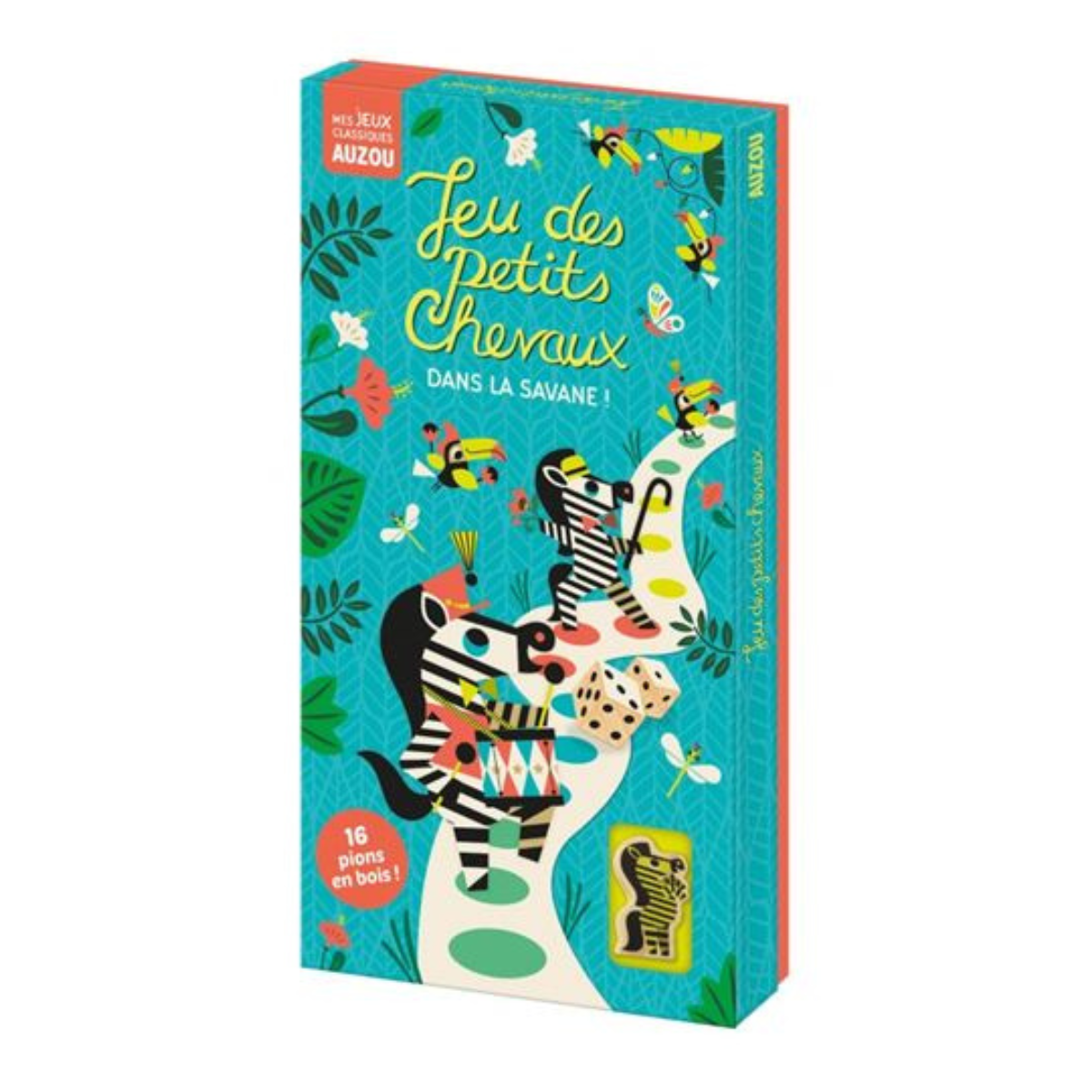 Redécouvrez un grand classique chez Auzou : le jeu des petits chevaux, revisité dans la savane ! Sous les pinceaux talentueux d’Amy Blay, ce jeu mondialement connu prend vie avec des zèbres colorés. Soyez le premier à mener vos zèbres au bout du parcours sur un plateau de jeu recto-verso offrant deux niveaux de difficulté. Avec ses 16 magnifiques pions et ses dés en bois, tout est soigneusement rangé dans un superbe sac en toile. Pour des parties rapides, un niveau simplifié avec moins de cases est disponible, adapté dès l’âge de 3 ans. Une aventure ludique et éducative vous…