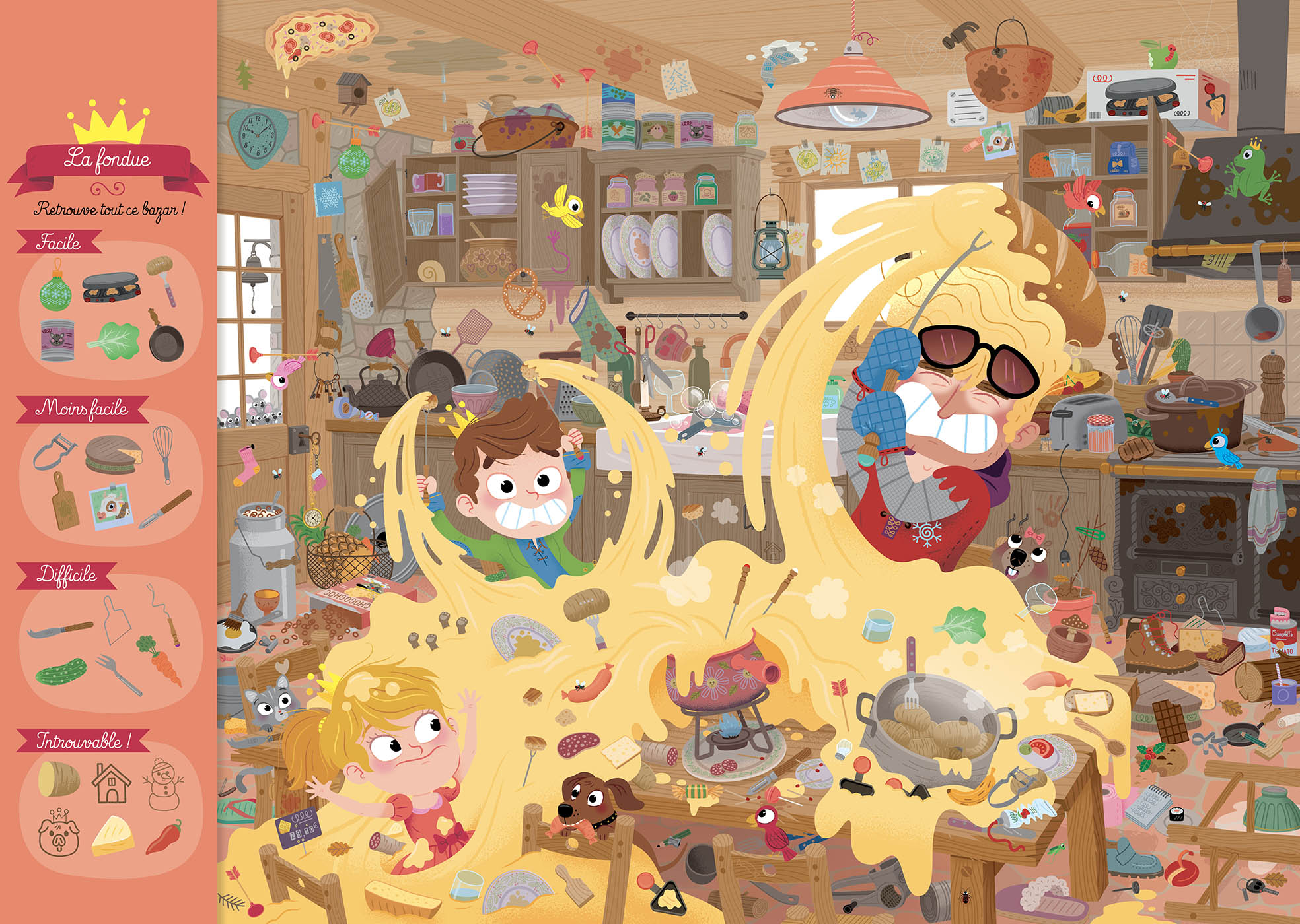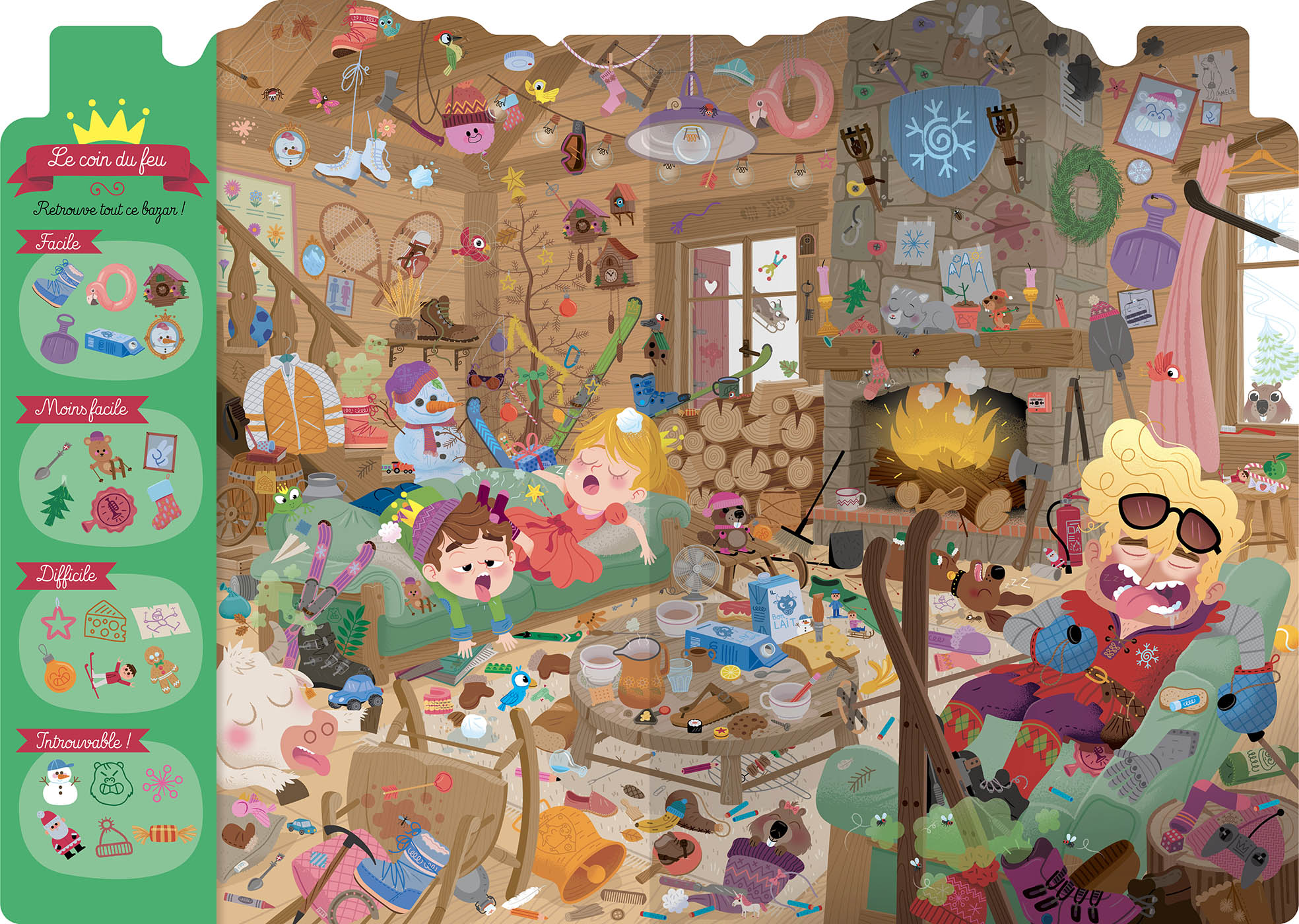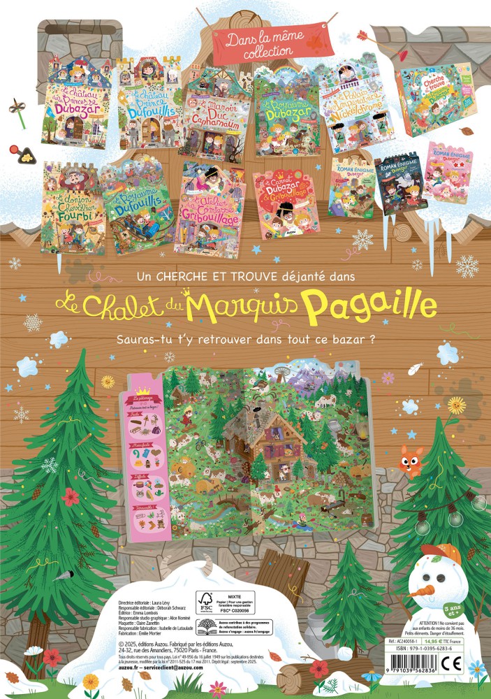 Retrouve la princesse Dubazar et le prince Dufouillis dans une nouvelle aventure pleine de bazar ! Pars à la recherche de 26 objets cachés dans le chalet du Marquis Pagaille : le coin du feu, la piste, l’étable, l’atelier et bien plus encore. Un cherche et trouve amusant qui développe l’observation, la concentration et l’attention des enfants. Idéal pour jouer seul ou en famille !