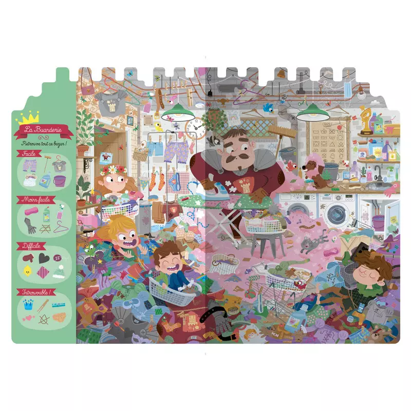 Le concept reste fidèle au succès de la collection : une activité cherche et trouve qui captivera les petits observateurs comme les plus grands. Dans chaque lieu visité, 26 éléments sont dissimulés, attendant d’être repérés avec attention. Au fil des pages, les enfants devront ouvrir grand les yeux pour inspecter la chambre, la salle d’armes, la buanderie, les écuries, les oubliettes et même la basse-cour !