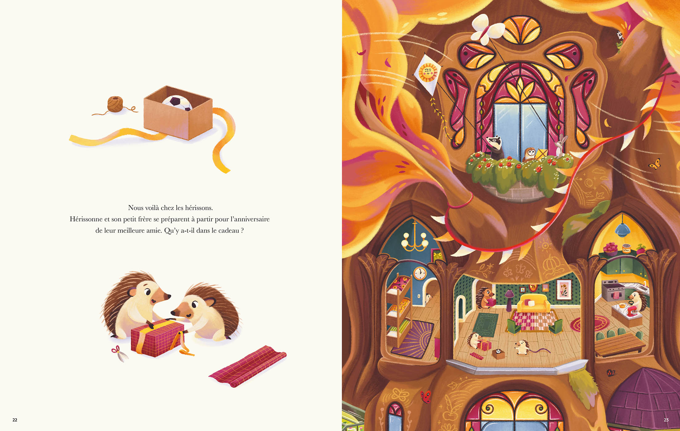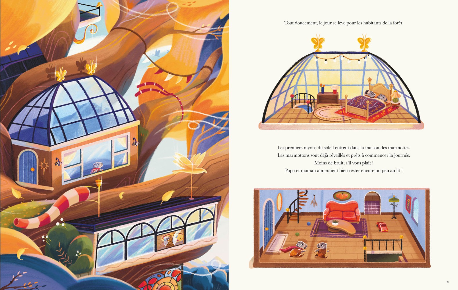 Le matin se lève sur la forêt. De la famille Marmotte à la famille Loir, découvrez la vie insoupçonnée qui s’agite au coeur du grand chêne. Plongez dans ces cabanes merveilleuses qui fourmillent de détails et émerveillez-vous de ce monde enchanteur, abrité par l’ombre protectrice de son feuillage.