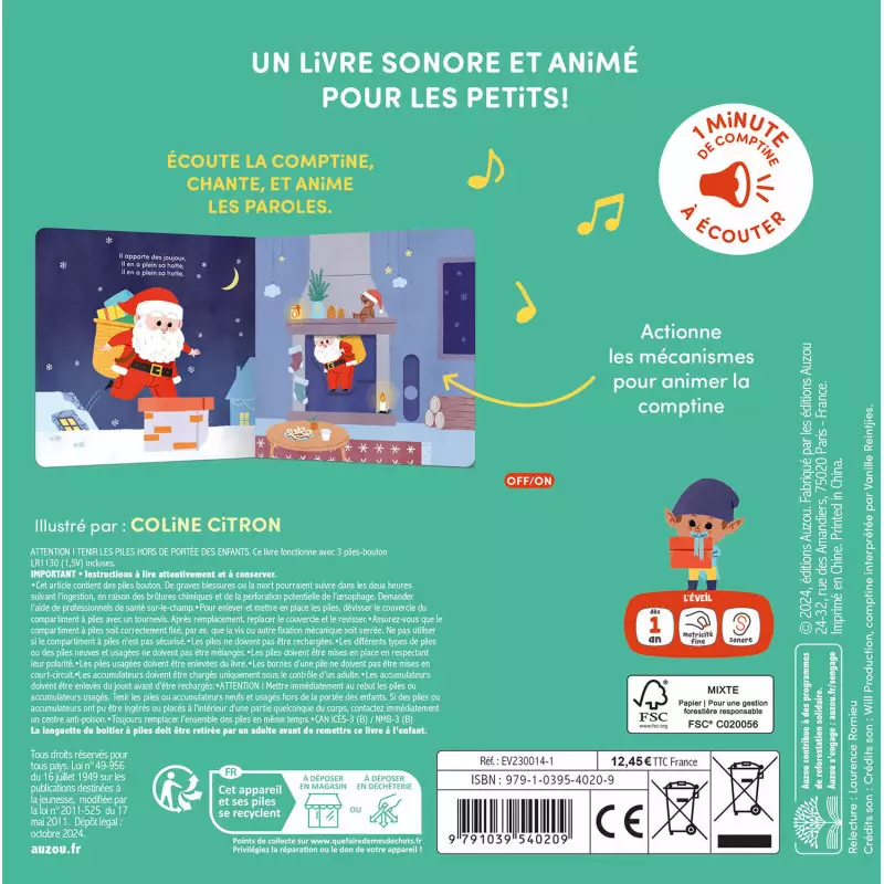 Découvrez un univers ludique et musical avec notre livre interactif, idéal pour les tout-petits. Grâce à la puce sonore intégrée sur la première double-page, accessible dès la couverture par une découpe pratique, votre enfant peut écouter et chanter sa comptine préférée. Cette fonctionnalité captivante invite à l’exploration et à l’interaction dès le premier contact.