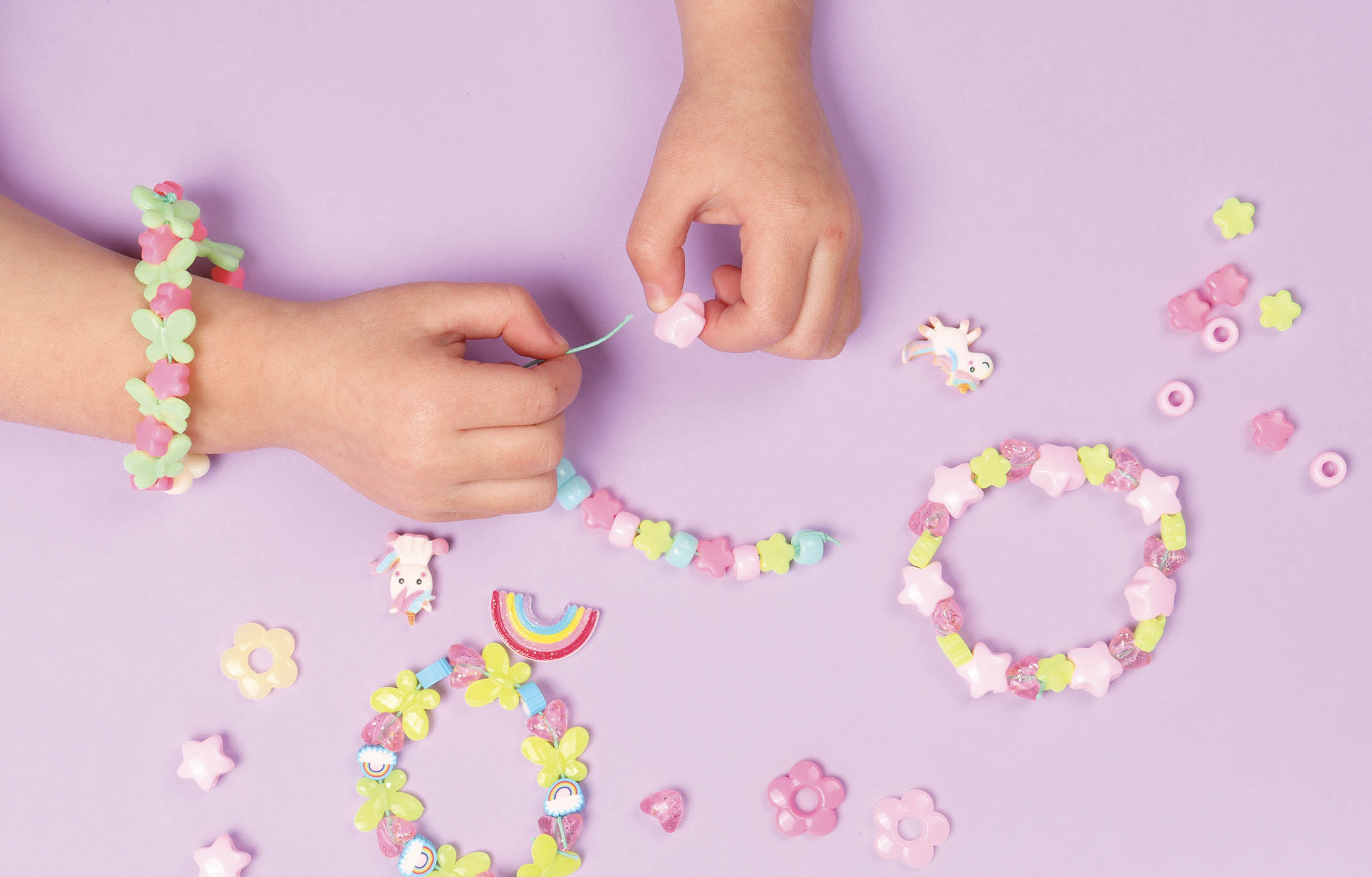 Dès 3 ans, l’enfant trouvera dans ce coffret un assortiment de perles de couleurs et de formes différentes, ainsi que des breloques fantaisie whaouh !