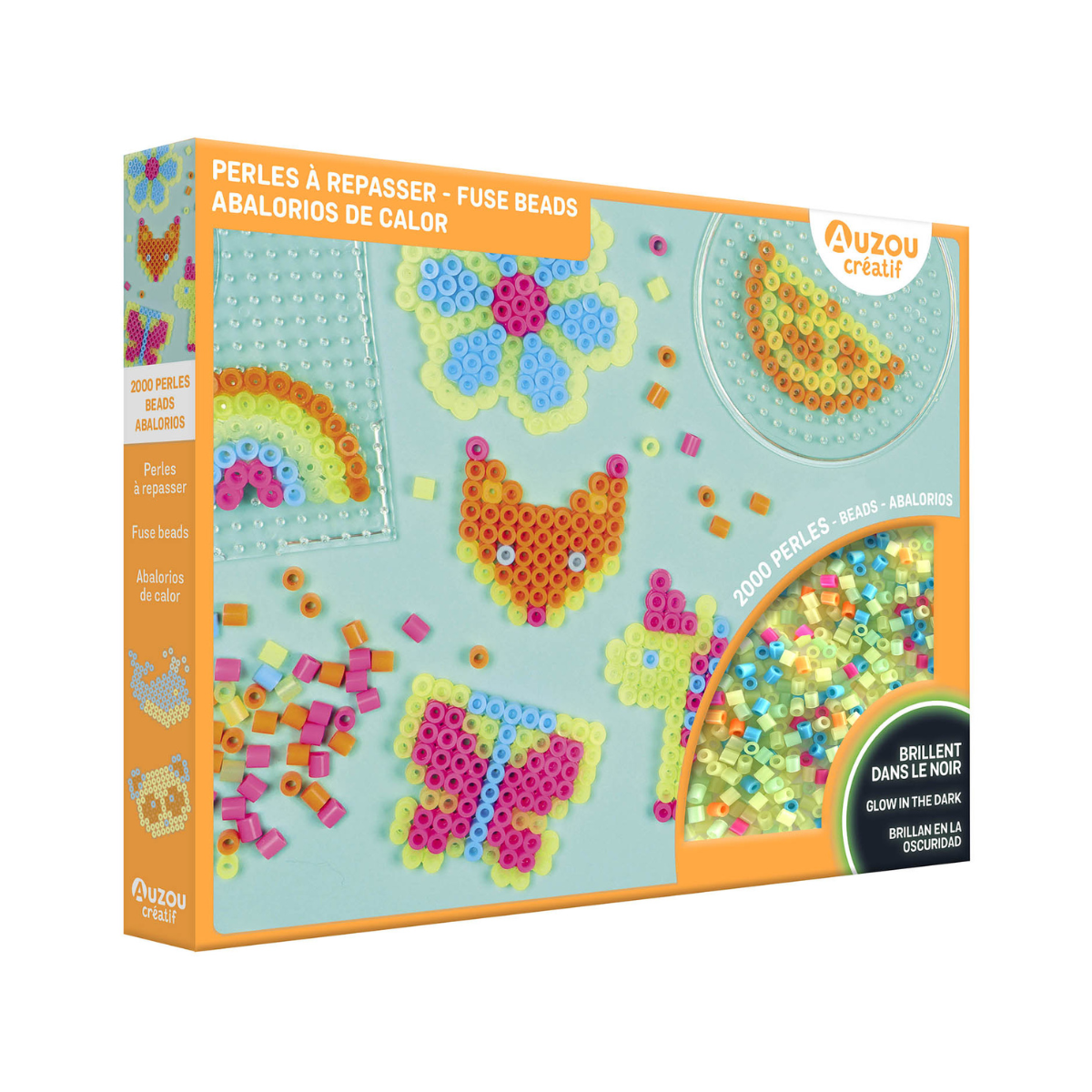 Réalise de magnifiques créations en perles à repasser grâce à tous tes accessoires ! 2000 perles dont 500 qui brillent dans le noir, deux plaques pour faire tes modèles, 16 modèles et des porte-clés pour y accrocher tes créations !