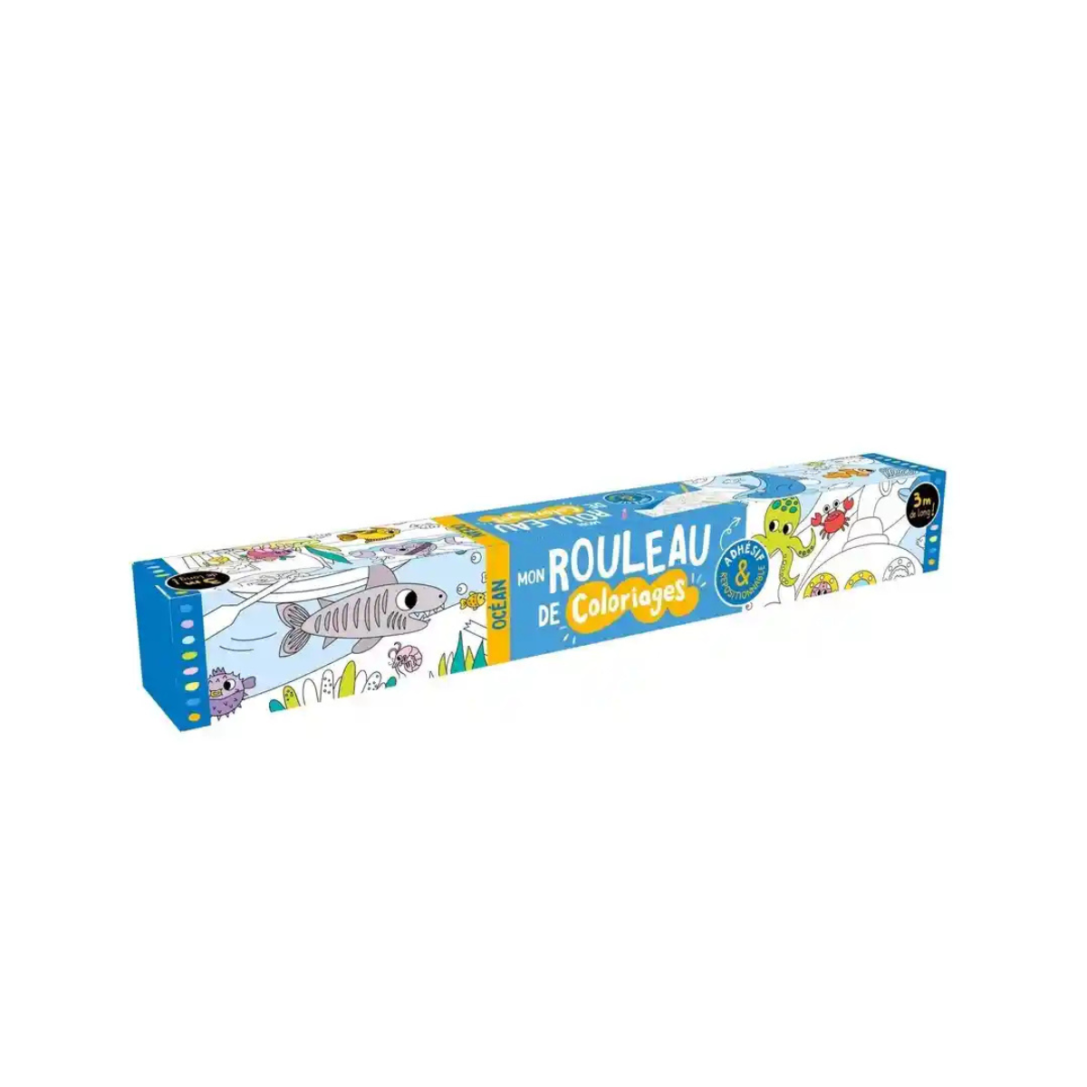 Un rouleau de coloriage adhésif et repositionnable de 3 mètres sur le thème des océans, parfait pour créer, découper et colorier partout et à tout moment, seul ou à plusieurs !