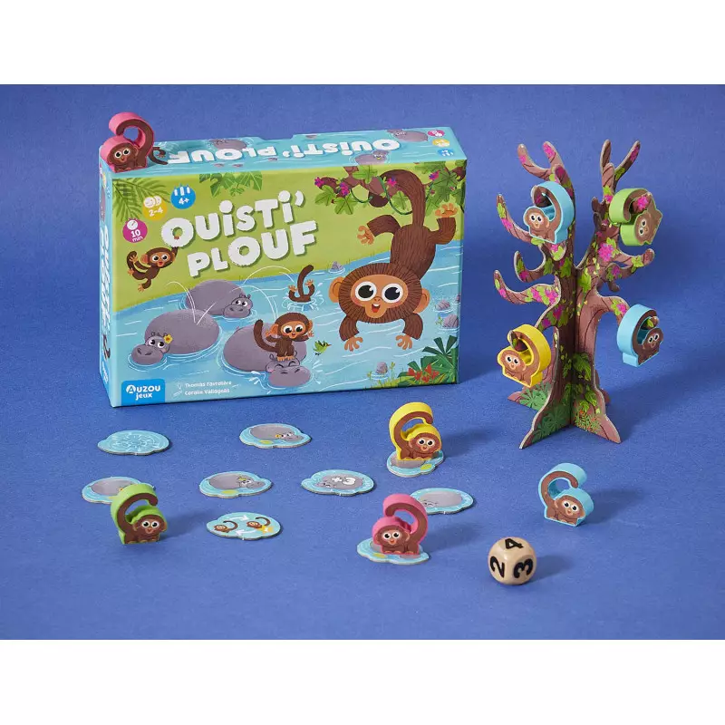 Tourne les tuiles Hippo correctement pour permettre à tous tes Ouisti’ de traverser la rivière sans tomber à l’eau ! Un jeu qui met à l’épreuve la mémoire et la tactique ! Comprend : 39 tuiles Hippo, 1 point de départ, 12 pions Ouisti’ en bois, 1 arbre en 3D, 1 dé en bois.