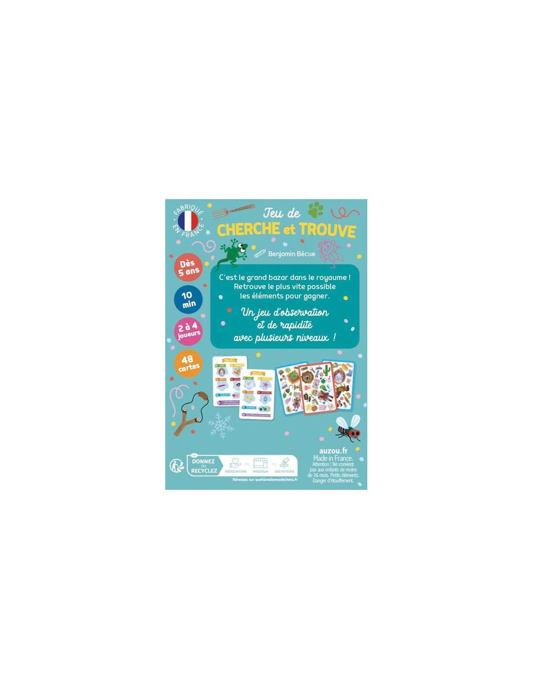 Fabriqué en France, ce jeu de société allie qualité et originalité. Les illustrations colorées et détaillées plongent les enfants dans un univers vivant et amusant, où chaque carte devient une petite scène à explorer et à analyser avec attention. Ce jeu favorise non seulement l’observation et la concentration, mais aussi la compétition amicale et le partage entre enfants ou avec toute la famille.