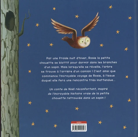 Découvrez Rosie la petite chouette, un conte de Noël réconfortant inspiré d’une histoire vraie. Par une froide nuit d’hiver, Rosie se blottit dans les branches d’un sapin… mais à son réveil, l’arbre est à l’arrière d’un camion ! Commence alors pour la petite chouette un voyage inattendu, ponctué de découvertes et de rencontres surprenantes. Ce récit tendre et captivant transmet des valeurs de courage, curiosité et bienveillance, tout en plongeant les enfants dans la magie de Noël. Avec ses illustrations poétiques, cette histoire invite à rêver et à partager un moment chaleureux en famille, parfait pour s’endormir ou se plonger…