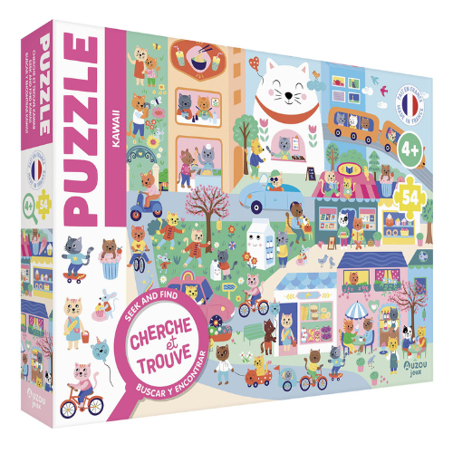 Plonge dans l’univers adorable du puzzle cherche et trouve kawaii ! Un jeu à la fois amusant et éducatif qui émerveillera les petits dès 4 ans. En assemblant les pièces, les enfants découvrent peu à peu une illustration colorée, pleine de petits détails mignons et rigolos, inspirée du style kawaii venu du Japon.