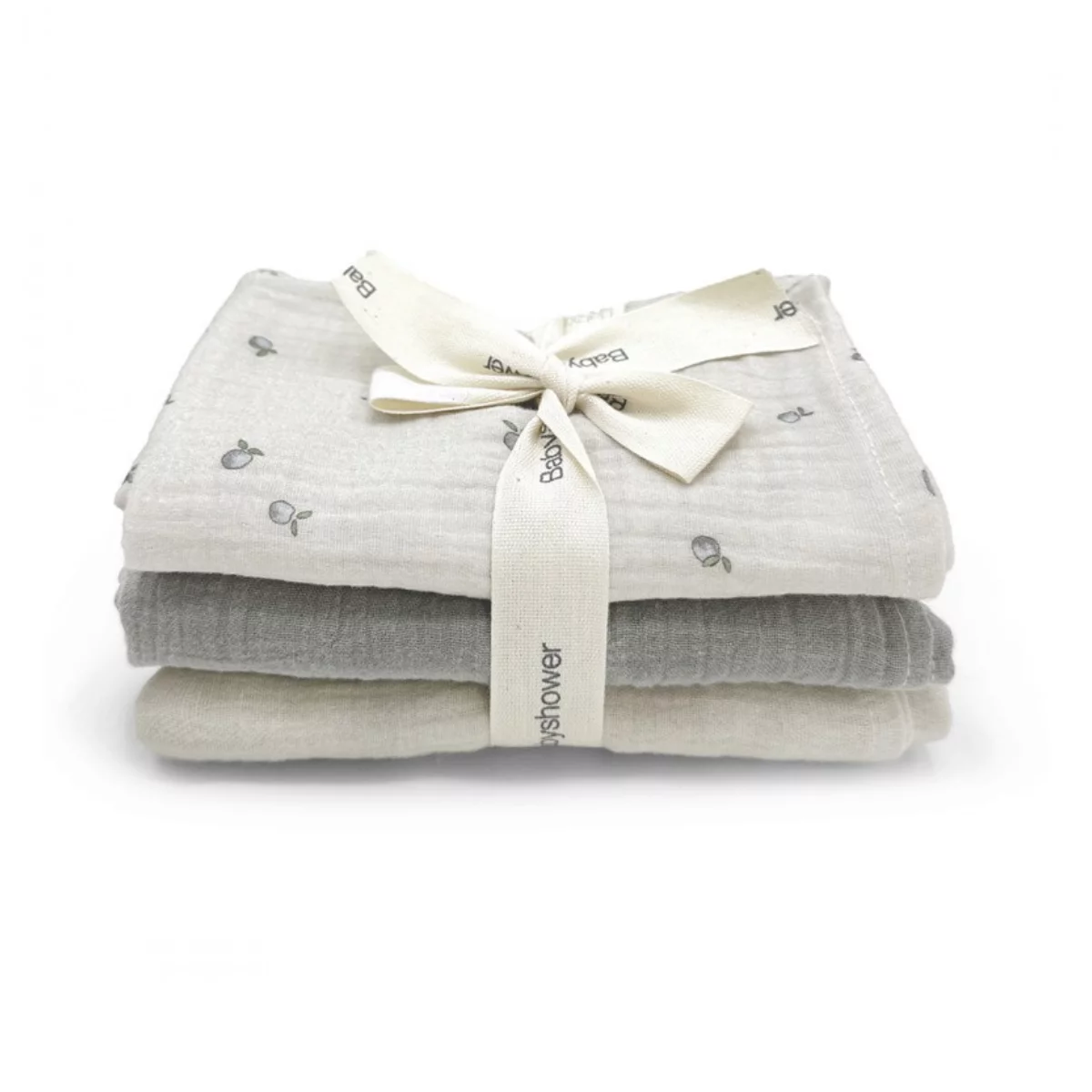 Découvrez le lot de 3 mini langes de BabyShower, en coton biologique certifié GOTS. Doux, respirants et polyvalents, ils offrent un confort optimal pour votre bébé, tout en respectant l’environnement.