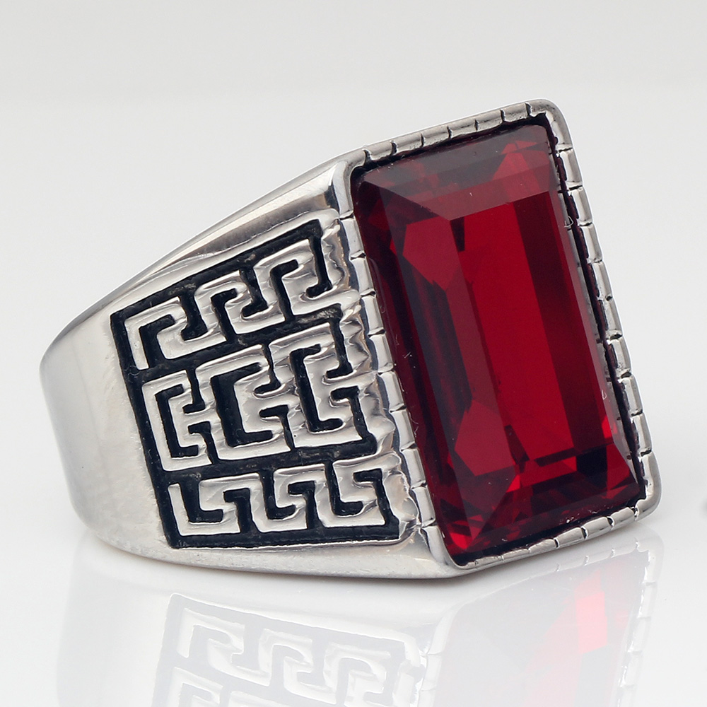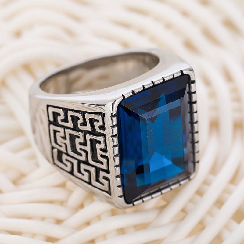 La forme géométrique de cette bague lui confère un charme unique. Les ornements sur les côtés ajoutent davantage de détails et d’élégance. Cette chevalière, très massive, affiche une taille imposante qui attire facilement les regards. Une pierre en zircone ornée sur le chaton sublime à merveille cette pièce d’exception. La taille généreuse de la bague, ainsi que les couleurs des pierres, est très masculine et met en valeur le côté viril de chaque homme. Vous avez le choix entre une pierre rouge bordeaux, symbole de passion et de puissance, ou une pierre bleu profond, qui évoque l’évasion.