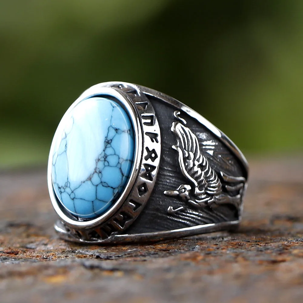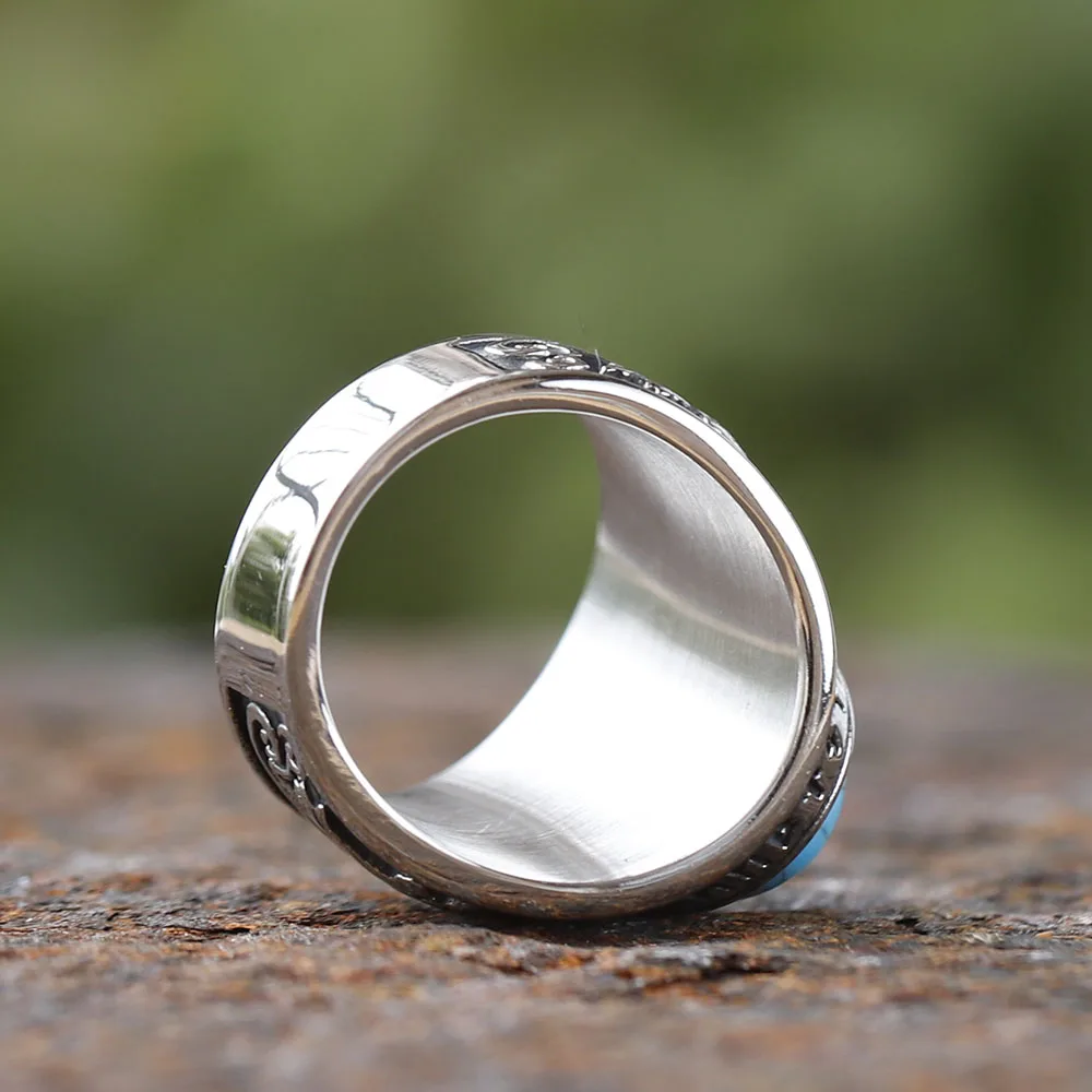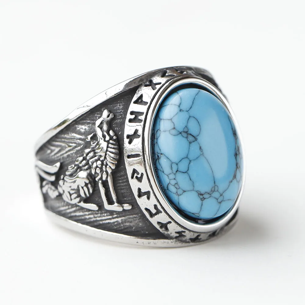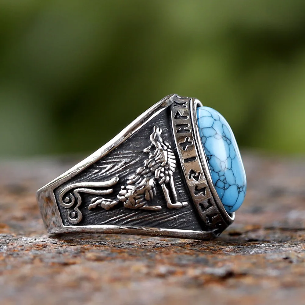 Affirmez votre style avec cette bague biker ornée de turquoise. Ses motifs runiques, sa tête de loup et son acier inoxydable 316L en font un bijou à la fois robuste et puissant. Sa pierre turquoise éclatante ajoute une touche mystique et protectrice. C’est l’accessoire idéal pour les motards et les esprits libres en quête d’authenticité.