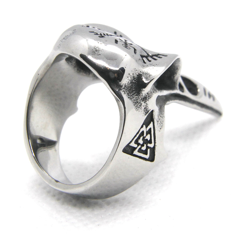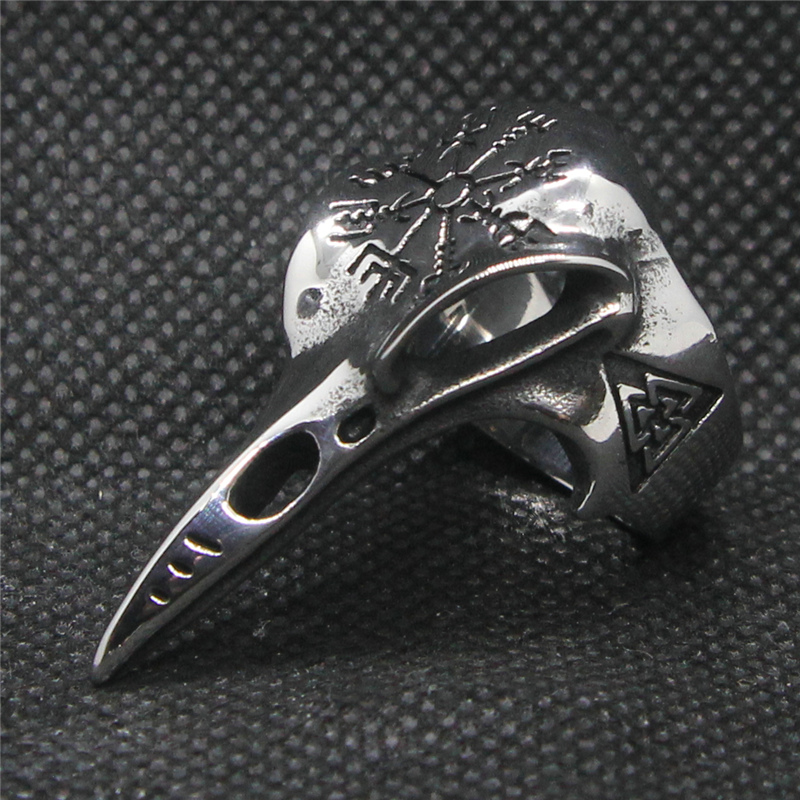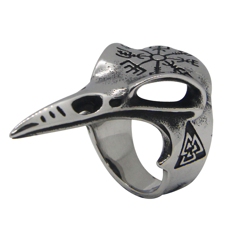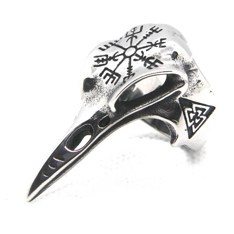 Cette bague en forme de crâne d’oiseau, bien massive, est parfaite pour les hommes de caractère et les hommes virils. Ce crâne d’oiseau très réaliste est orné de superbes runes vikings qui évoquent les dieux nordiques tels que Thor et Odin. Inspirez-vous de leur force en portant cette bague à votre doigt. Le motif sur le dessus du crâne représente le Vegvisir, un symbole d’orientation et de protection.