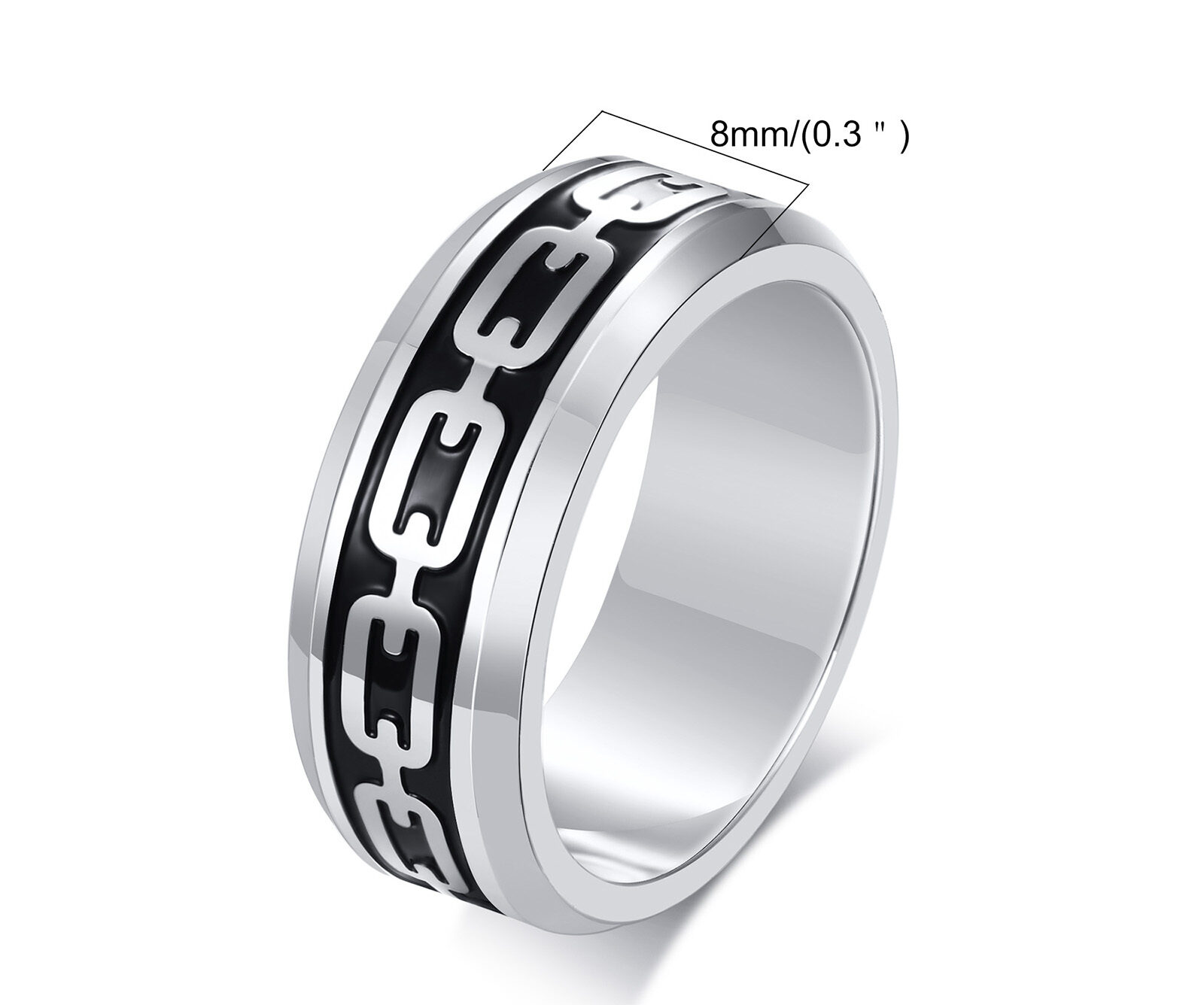 Cette bague adopte un style très tendance avec son motif en forme de chaîne. Le mélange de la couleur métal argenté et du noir confère un aspect très masculin à cette pièce. C’est la bague idéale pour compléter un look décontracté et à la mode. La bague dégage une véritable classe grâce à son acier inoxydable bien lustré, et son épaisseur procure une sensation de solidité et de résistance. Optez pour cette bague si vous souhaitez offrir un accessoire qui ravira votre mari.