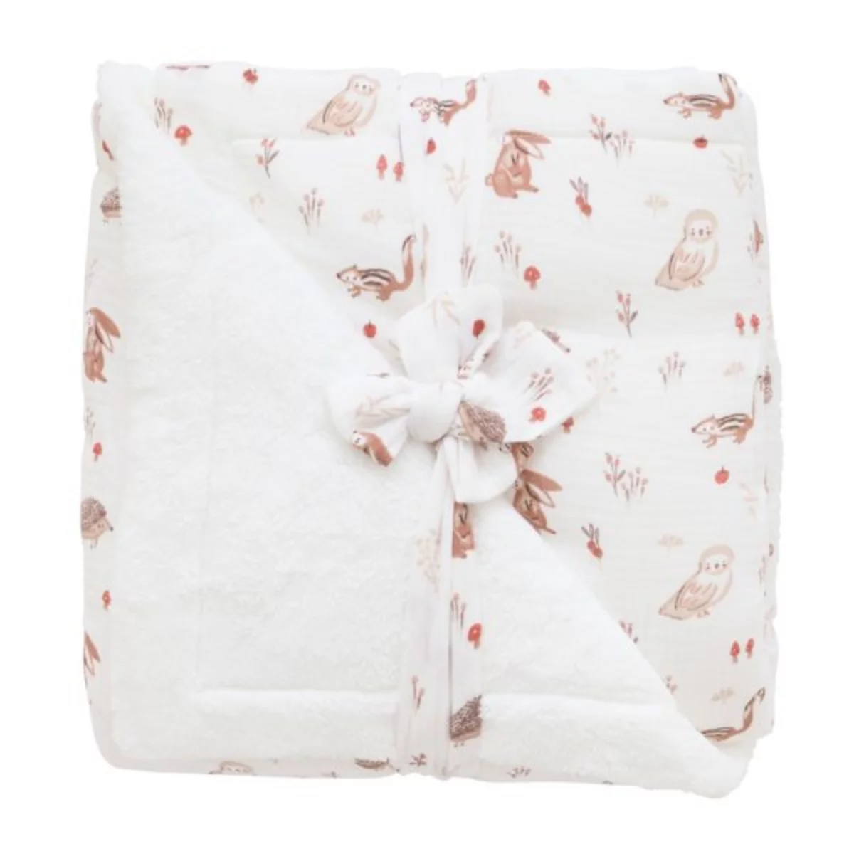 Le verso de la couverture est doublé en gaze de coton, ajoutant une touche supplémentaire de douceur et de respirabilité. La gaze de coton est un matériau naturel, connu pour sa légèreté et sa capacité à réguler la température corporelle, ce qui permet à la peau de bébé de respirer tout en restant bien au chaud. Cette combinaison de matériaux assure que la couverture est douce au toucher et respectueuse de la peau sensible des nouveau-nés.