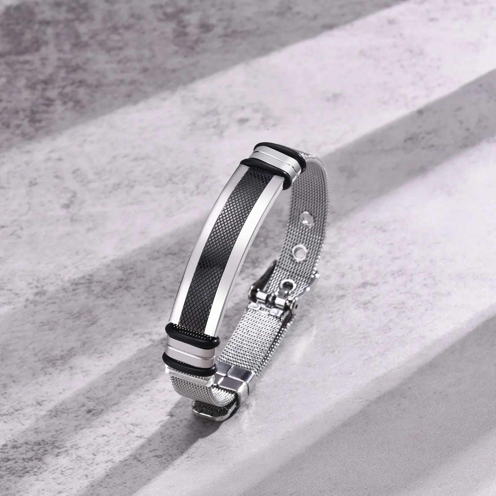 Notre bracelet acier ado en maille argentée avec plaque stylisée s’inspire des bracelets de montre iconiques. Sa longueur réglable s’adapte parfaitement à tous les poignets. En acier inoxydable durable, il accompagne les jeunes hommes au quotidien avec un style affirmé et contemporain.