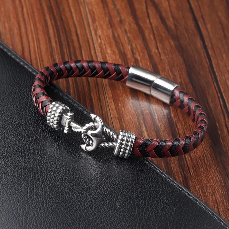 Ce bracelet fin en cuir tressé bicolore est agrémenté d’une breloque en forme d’ancre en acier inoxydable, symbolisant l’élégance et la robustesse. Le fermoir magnétique assure une fermeture sécurisée tout en facilitant son utilisation. Ce design intemporel s’adapte parfaitement aux hommes recherchant un accessoire à la fois classique et décontracté.