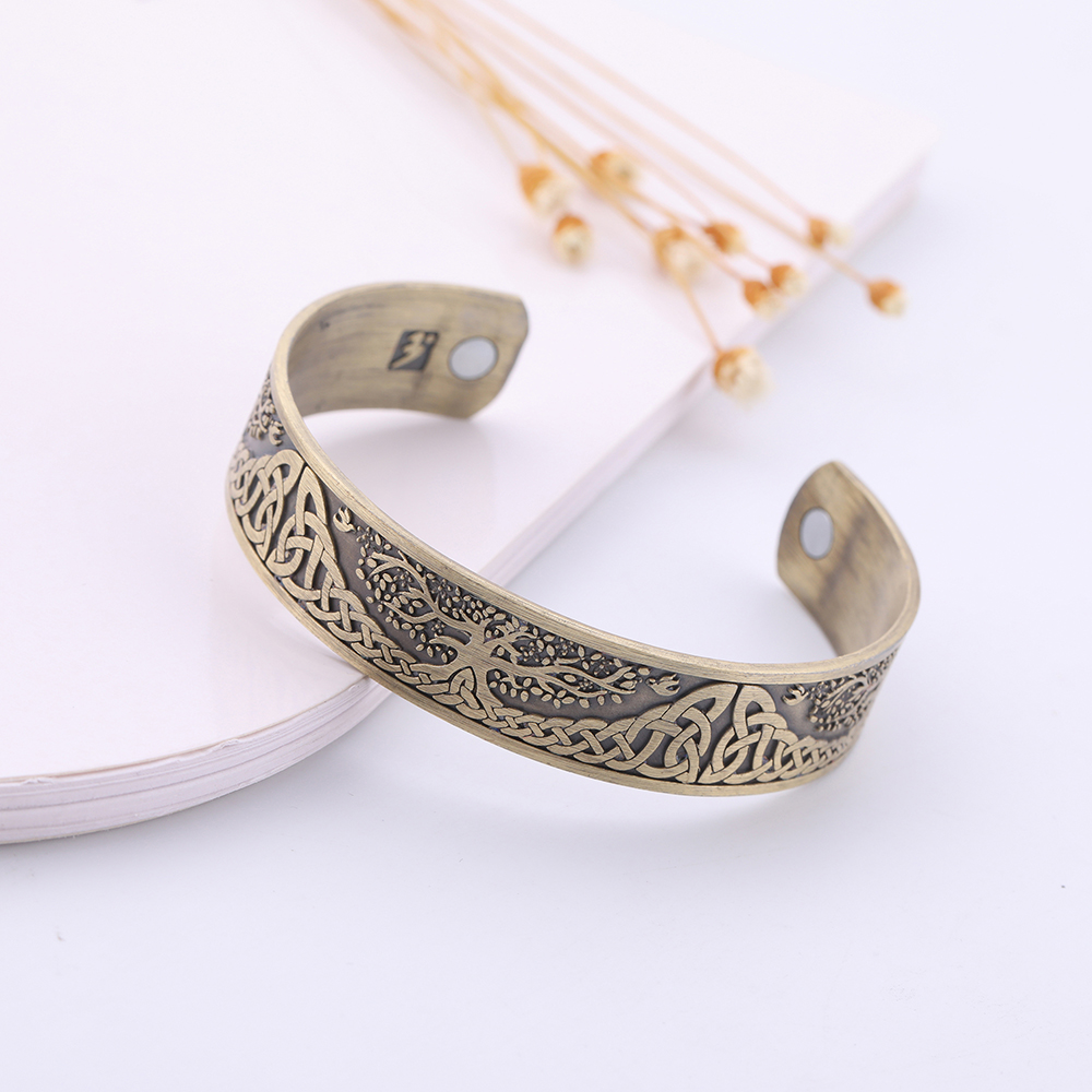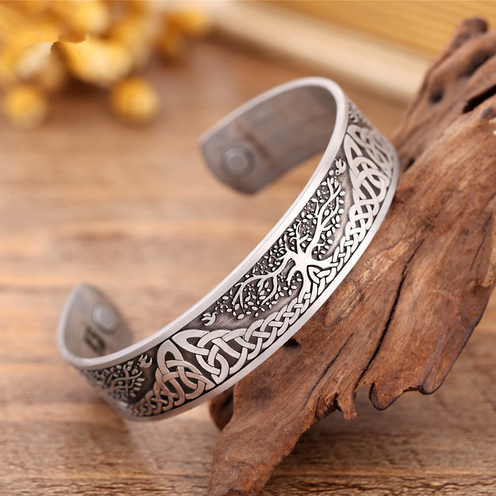 Ce bracelet avec un motif d’arbre de vie inspire la robustesse et une fabrication de haute qualité.