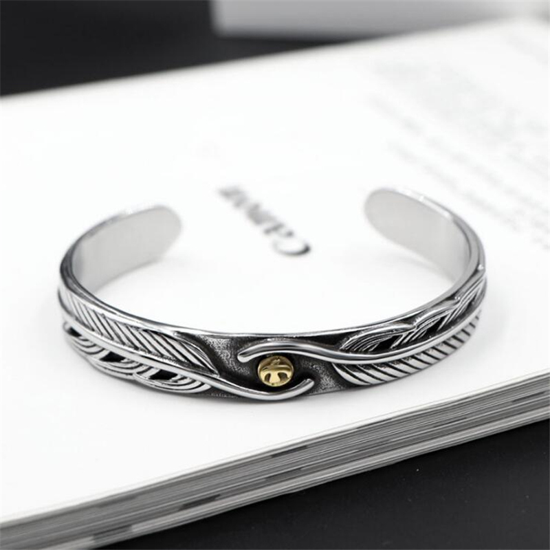 Fabriqué en acier inoxydable, ce bracelet est résistant à l’eau et peut être porté pendant des années sans crainte de rouiller. Son élégant motif de plumes, qui entoure un aigle doré, évoque celui de la tribu amérindienne. Vous pouvez l’offrir en toute confiance comme cadeau, car sa structure en manchette le rend adapté à tous les poignets.