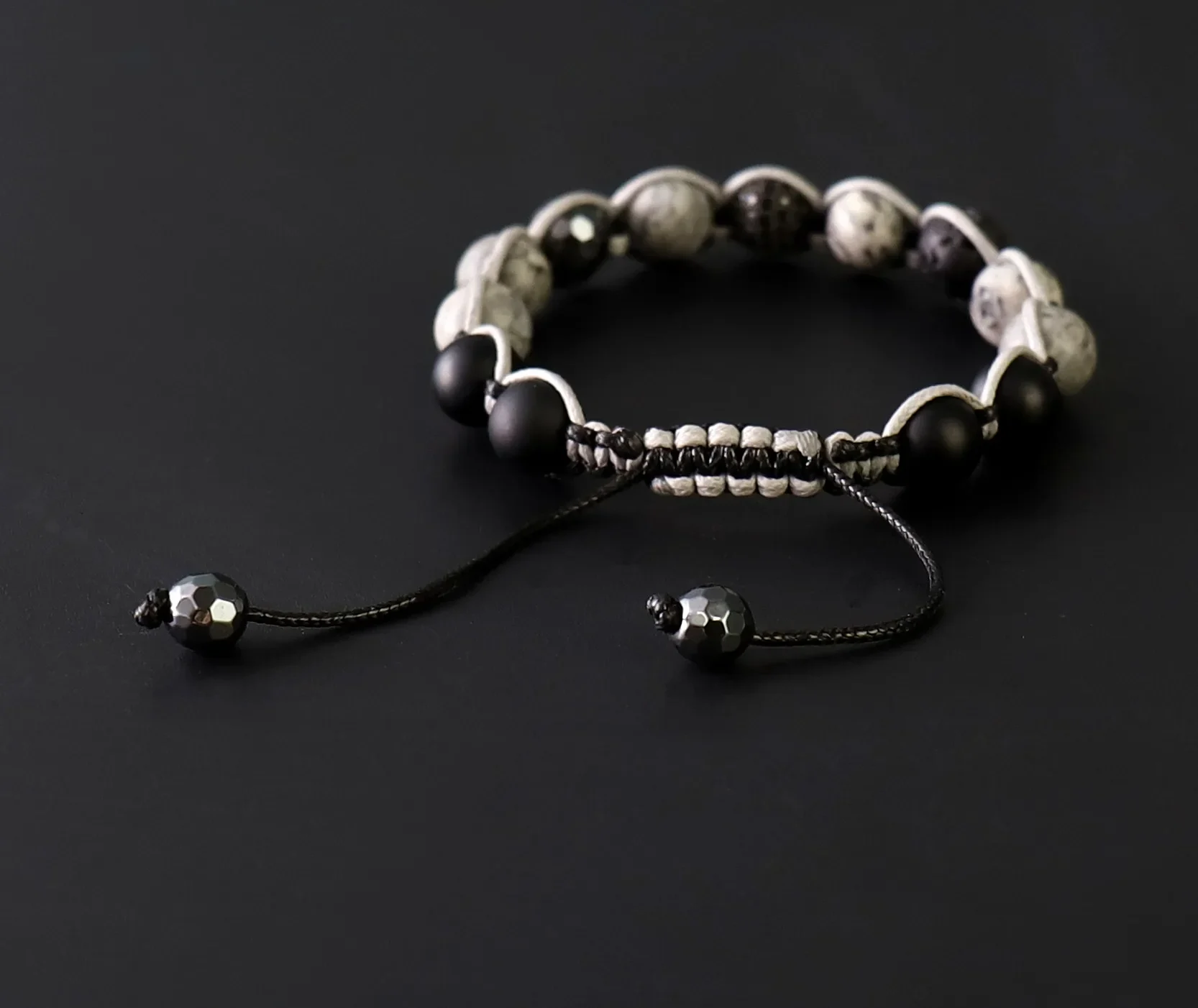Ce bracelet en cordon avec pierre pour homme allie une corde tressée fine, mais robuste, à des pierres naturelles soigneusement sélectionnées, créant un équilibre subtil entre élégance et spiritualité. Son fermoir à lacet ajustable garantit un confort sur mesure, s’adaptant parfaitement à votre poignet.