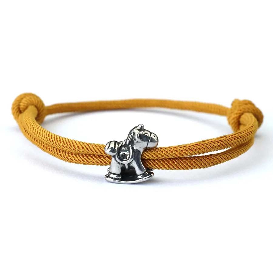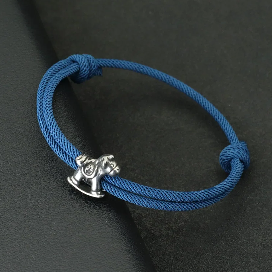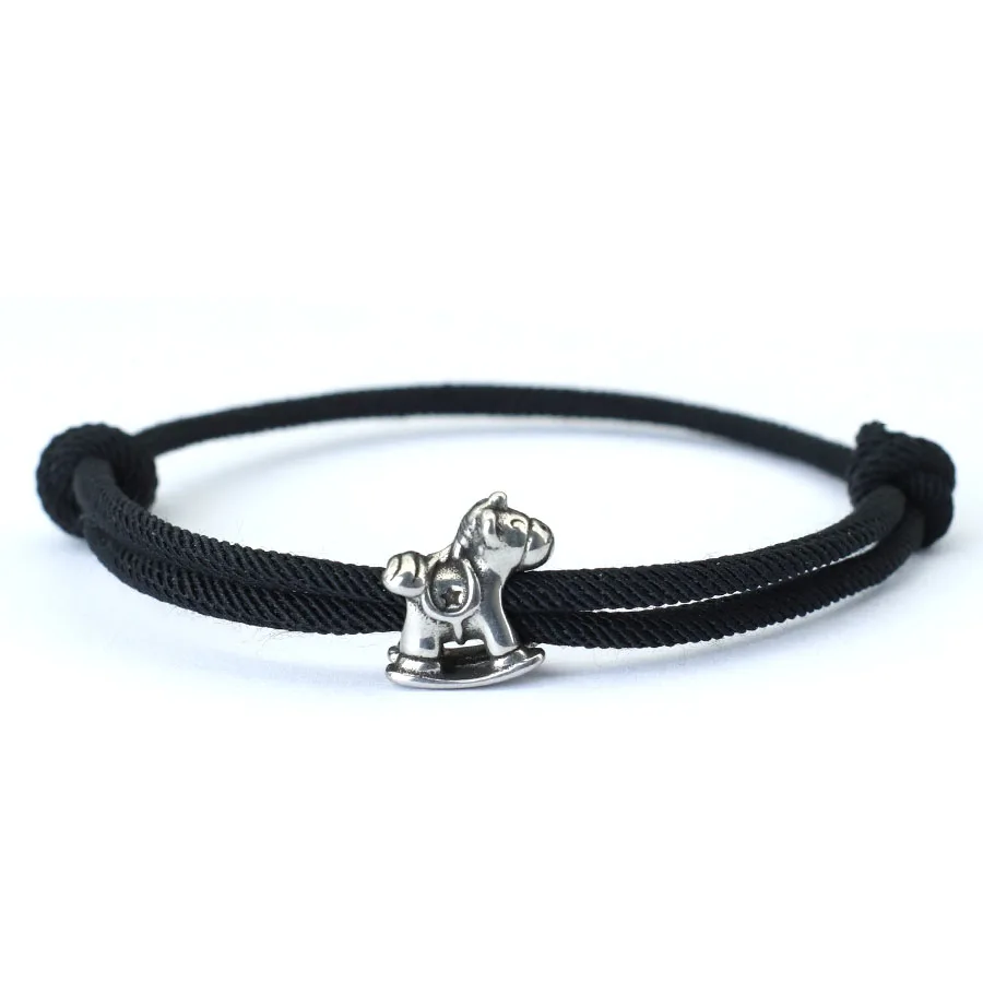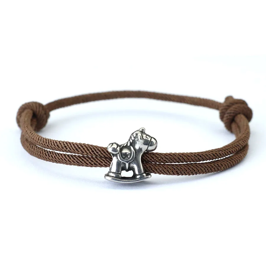 Ce bracelet cordon pour homme mêle finesse et émotion. Sa breloque cheval à bascule évoque l’enfance avec élégance. Taille ajustable, design épuré, il se porte en toute simplicité. Un bijou discret, mais chargé de sens, pensé pour ceux qui aiment les symboles et les détails subtils. Un accessoire à la fois intime et raffiné.