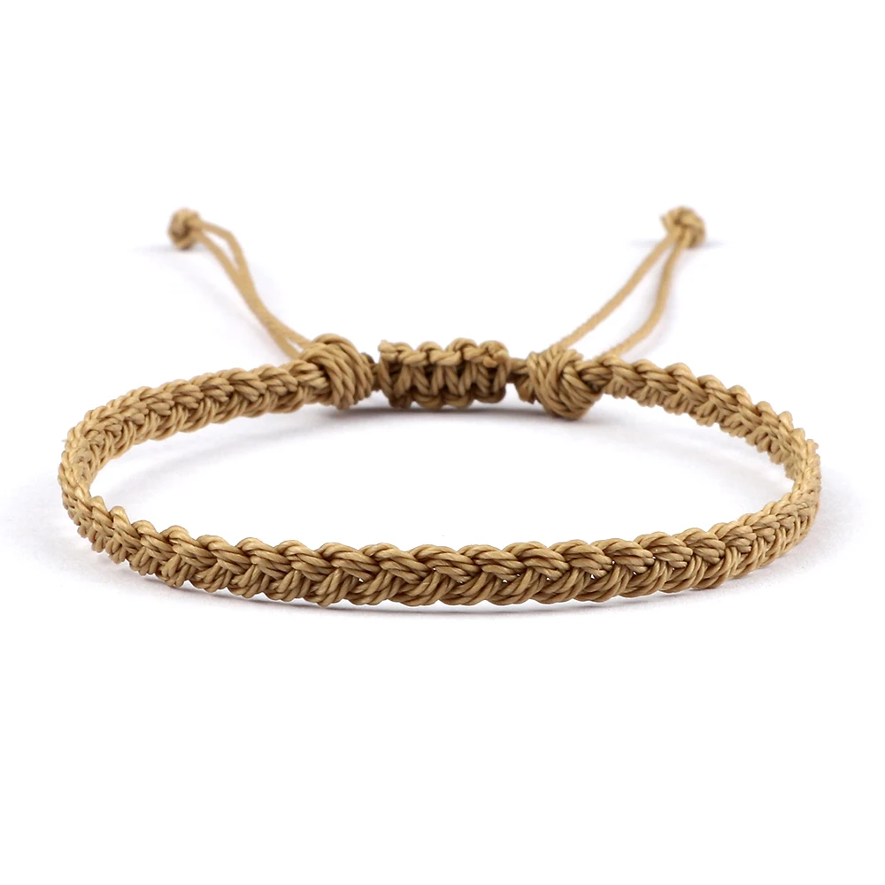 Ce bracelet tressé à la main incarne l’essence du bijou artisanal. Confectionné en fil ciré résistant, il allie légèreté et durabilité. Son tressage régulier souligne un savoir-faire simple, mais soigné. Chaque pièce témoigne d’une attention portée aux détails, sans superflu.