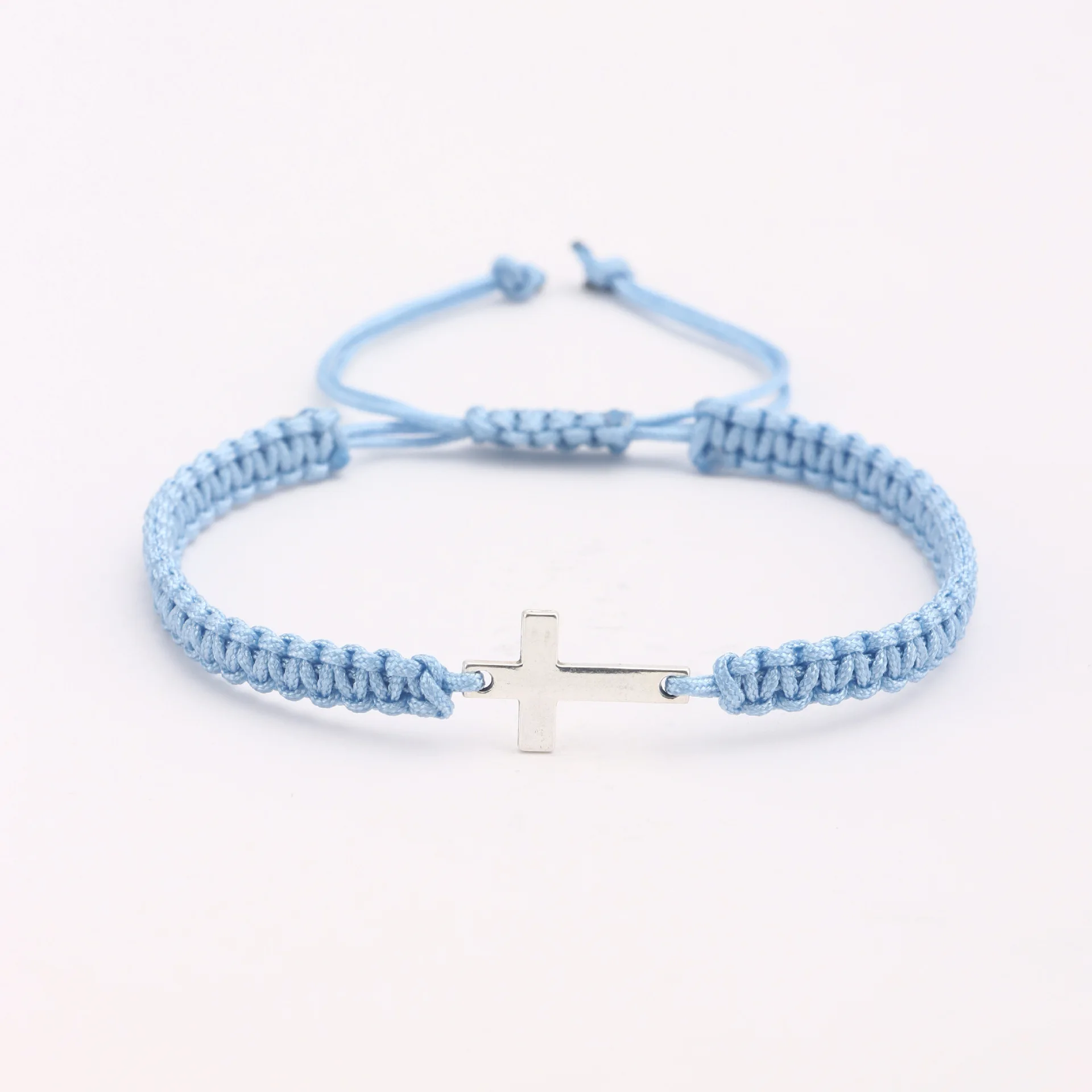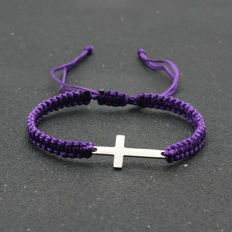 Exprimez votre style avec ce bracelet en cordon croix pour homme. Son cordon tressé ajustable épouse parfaitement le poignet, tandis que sa croix en acier inoxydable argentée ajoute une touche de raffinement.
