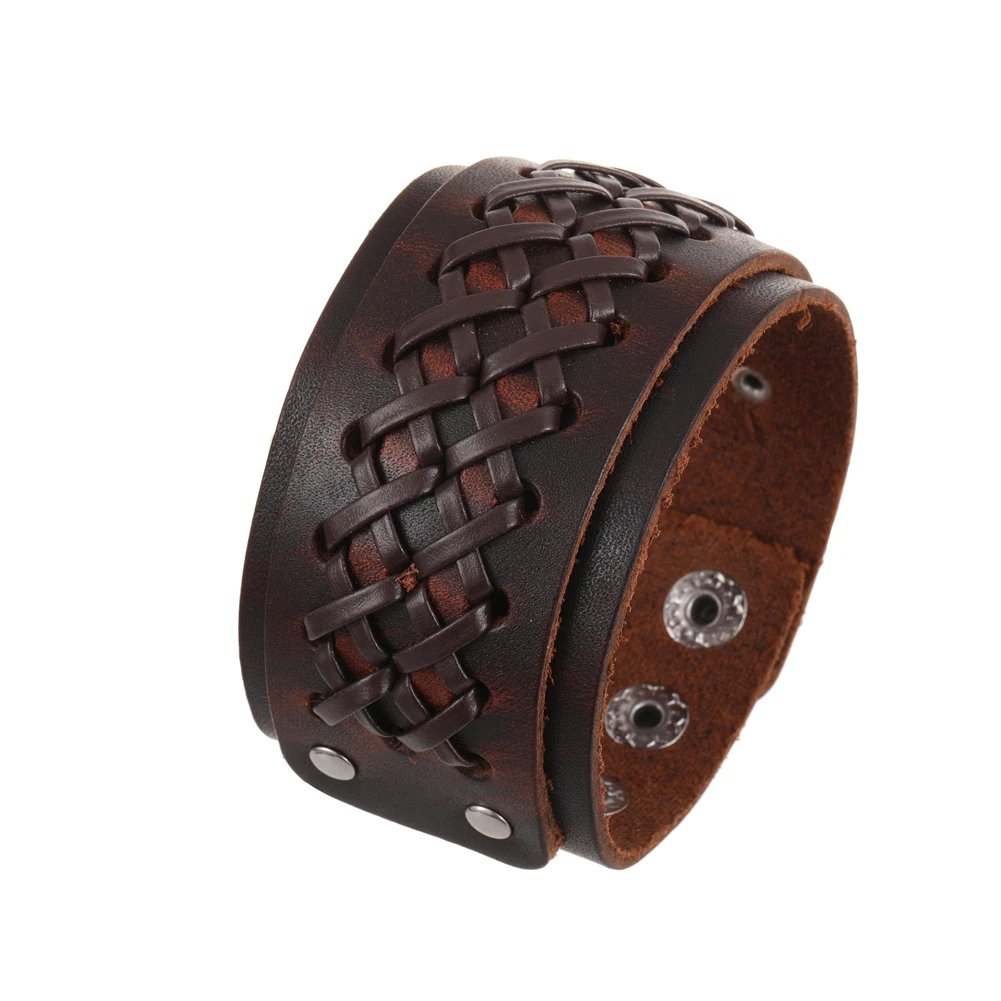 Ce bracelet cuir homme de force en marron foncé est confectionné en cuir véritable de haute qualité. Son design unique combine une manchette large, une double couche robuste et des détails tressés qui lui apportent une touche d’élégance vintage. Idéal pour un look décontracté et stylé, ce bracelet rehausse instantanément votre tenue avec caractère.