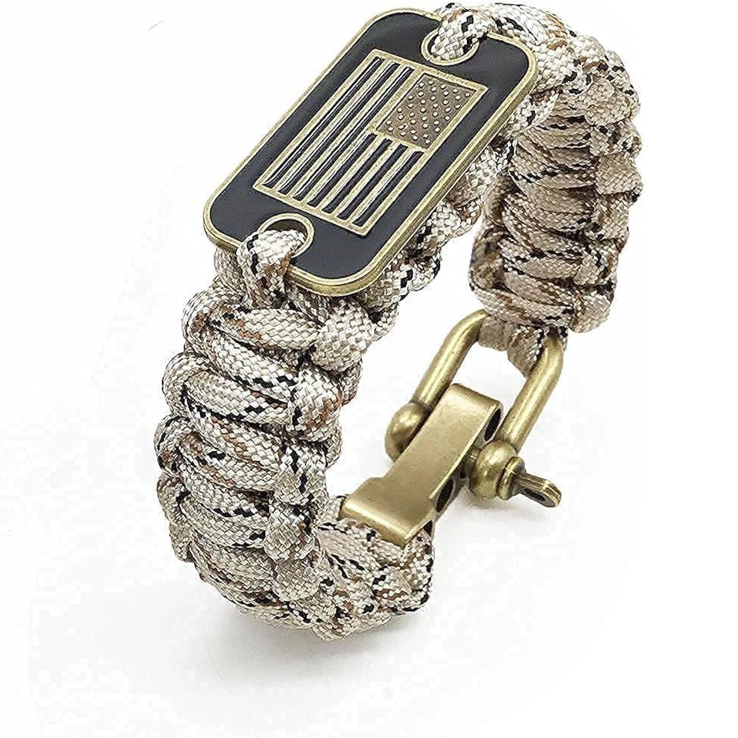 Ce bracelet n’est pas seulement fonctionnel, il est également un véritable symbole de style. Avec son motif camouflage tendance et sa plaque en bronze représentant le drapeau américain, il incarne l’esprit d’aventure et les valeurs militaires avec panache.