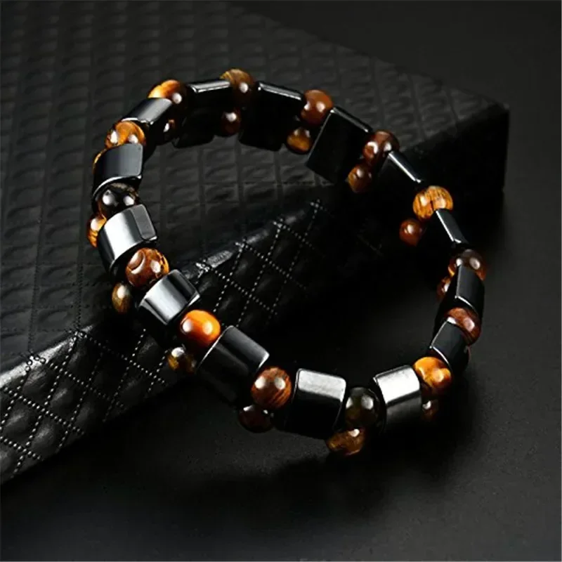 Fabriqué avec des pierres naturelles d’obsidienne noire et d’œil de tigre, ce bracelet se distingue par sa conception en double couche. Les perles sont montées sur un élastique solide, offrant un ajustement parfait et confortable pour tous les poignets. Son design sobre et raffiné s’adapte aussi bien aux looks décontractés qu’élégants, en faisant un choix idéal pour un usage quotidien.