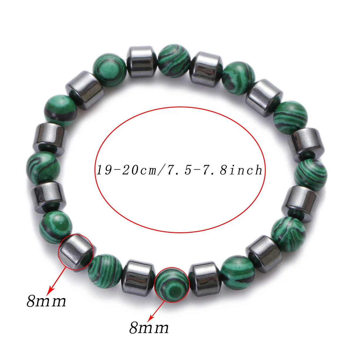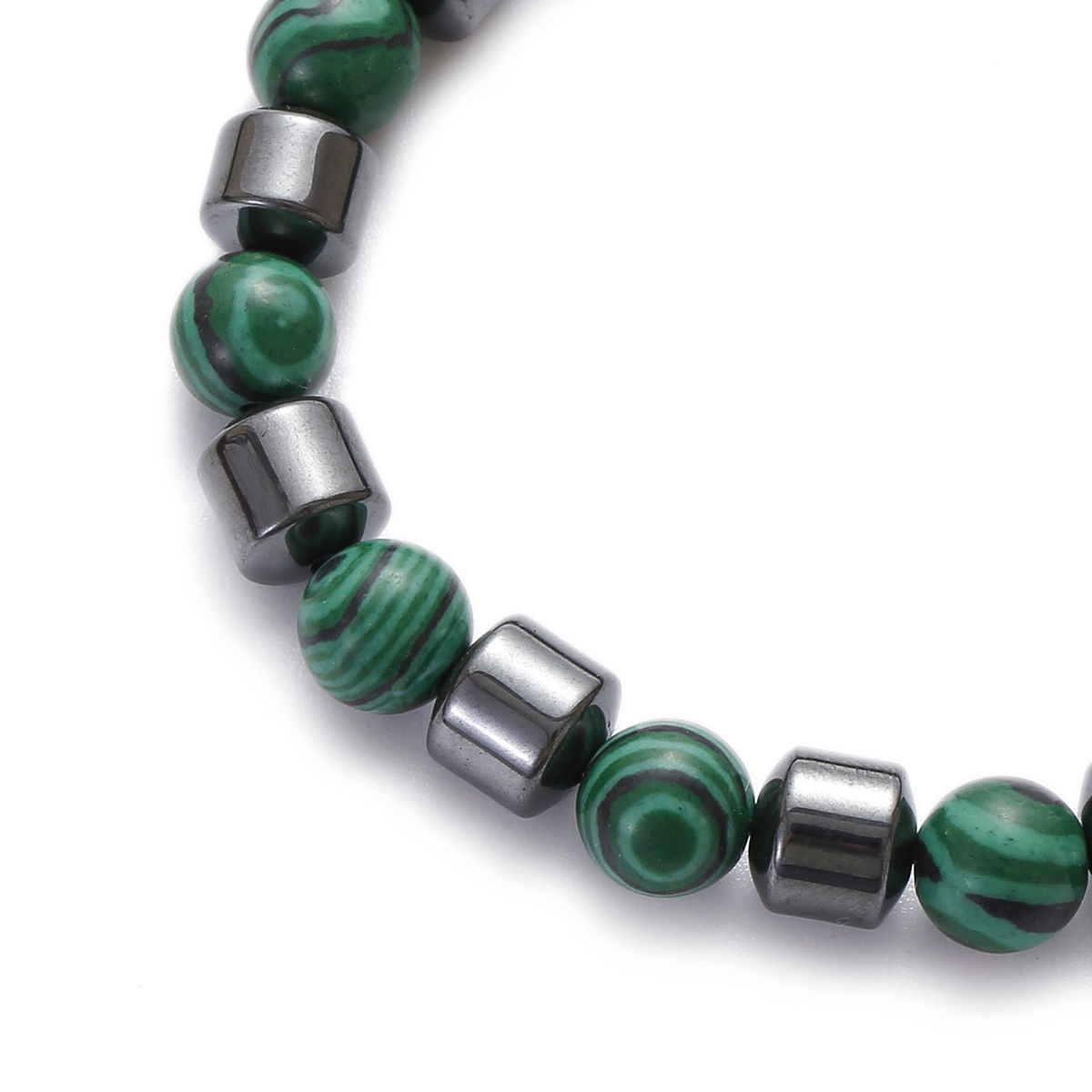 Le bracelet hématite et malachite s’adapte à de nombreux styles, que ce soit décontracté, professionnel ou chic. Il complète tout look avec élégance.