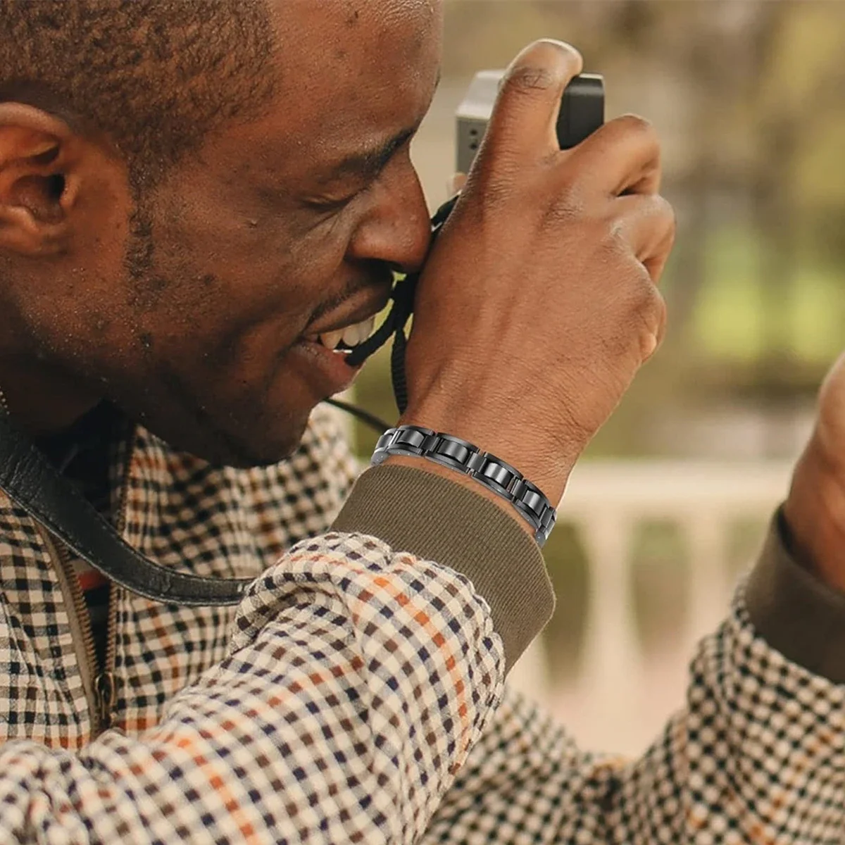 Dans un monde où le rythme effréné du quotidien peut parfois peser, ce bracelet hématite magnétique se présente comme une échappatoire élégante. Conçu pour les hommes qui ne veulent pas choisir entre style et bien-être, il marie avec subtilité une chaîne en acier sobre à une plaquette en hématite aux propriétés reconnues. Bien plus qu’un simple accessoire, c’est un compagnon discret qui veille sur votre équilibre tout en sublimant votre allure.