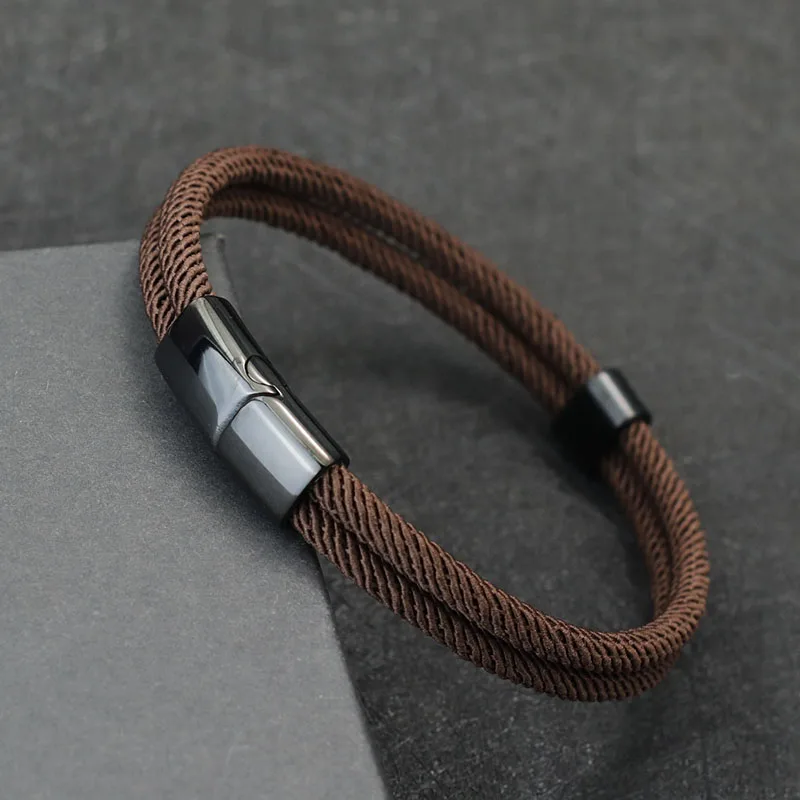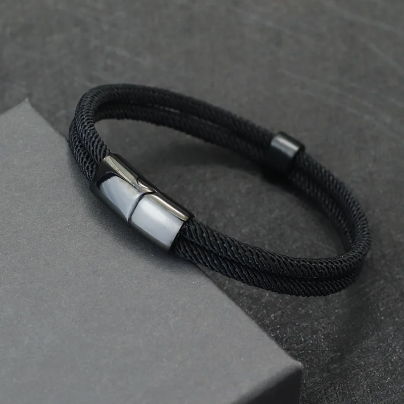 Élaboré avec une corde en nylon bicouche ultra-résistante, le bracelet homme en corde préserve sa forme et sa couleur, même après un port quotidien prolongé. La partie en acier et le fermoir magnétique en acier inoxydable noir, à la fois élégants et robustes, garantissent une durabilité à toute épreuve.