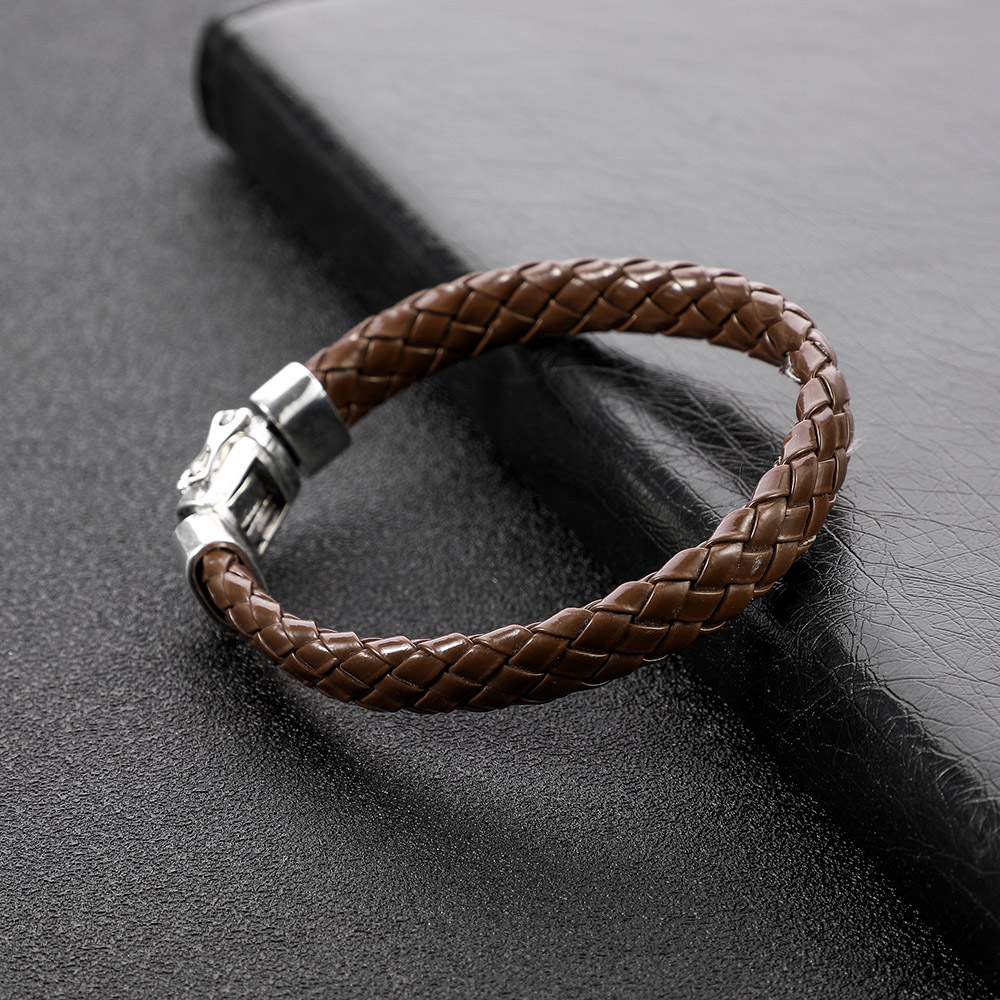 Ce bracelet pour homme en cuir avec un fermoir en argent est un accessoire qui se porte pour toutes les sorties du quotidien. Il apporte une touche de style à une tenue classique et décontractée.