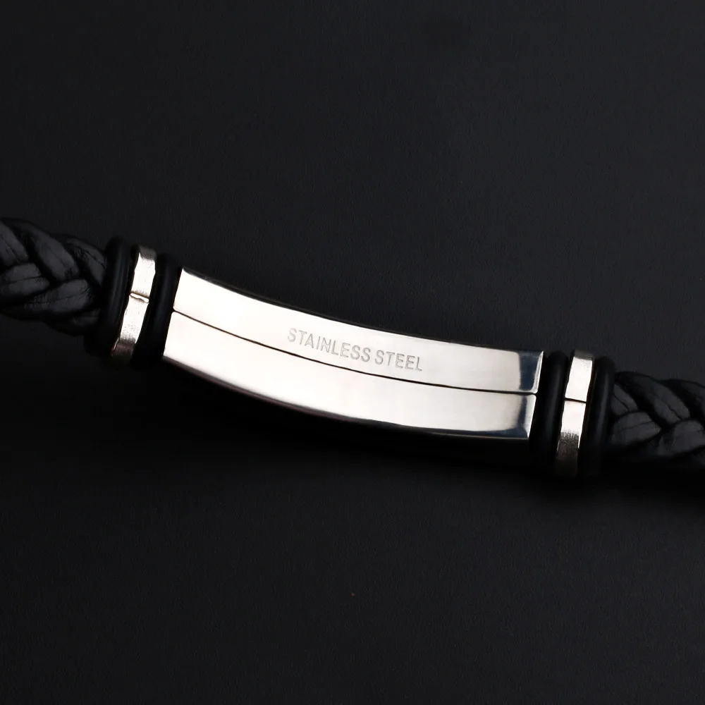 Notre bracelet homme en cuir tressé avec plaque personnalisable en acier inoxydable allie tradition et modernité. Gravez-y un nom, une date ou une citation pour créer un accessoire unique. Son design classique et épuré sublime votre style avec une touche personnelle distinctive.