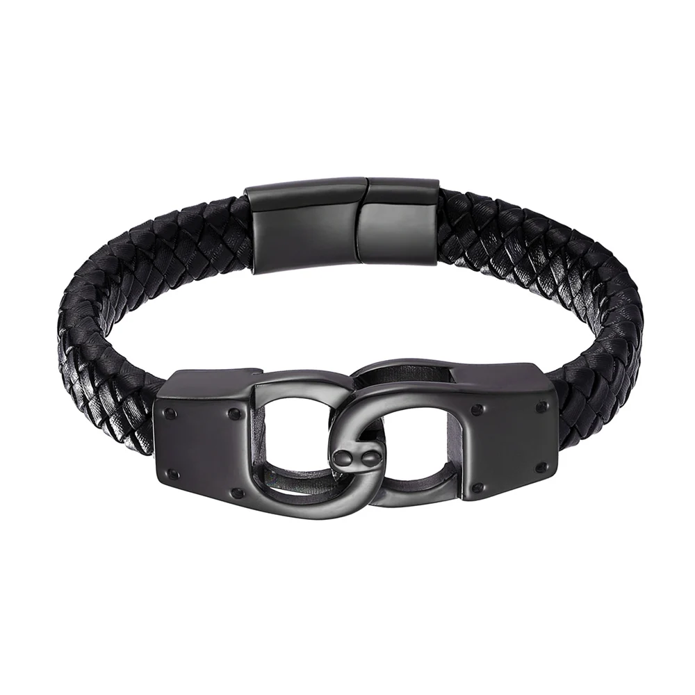 Notre bracelet menotte est conçu en cuir tressé, un matériau robuste et durable qui confère à l’accessoire une allure à la fois simple et raffinée. Les menottes en acier inoxydable ajoutent une touche d’originalité qui saura attirer les regards.