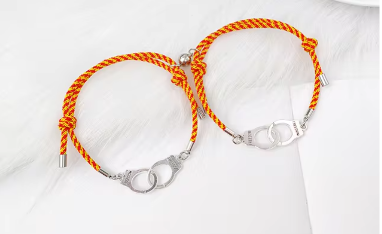 Exprimez votre lien avec le bracelet menotté orange. Minimaliste, réglable et stylé, ce bijou coloré en duo est parfait pour les couples.
