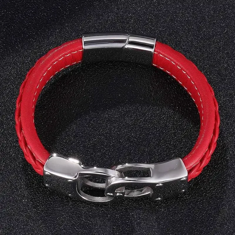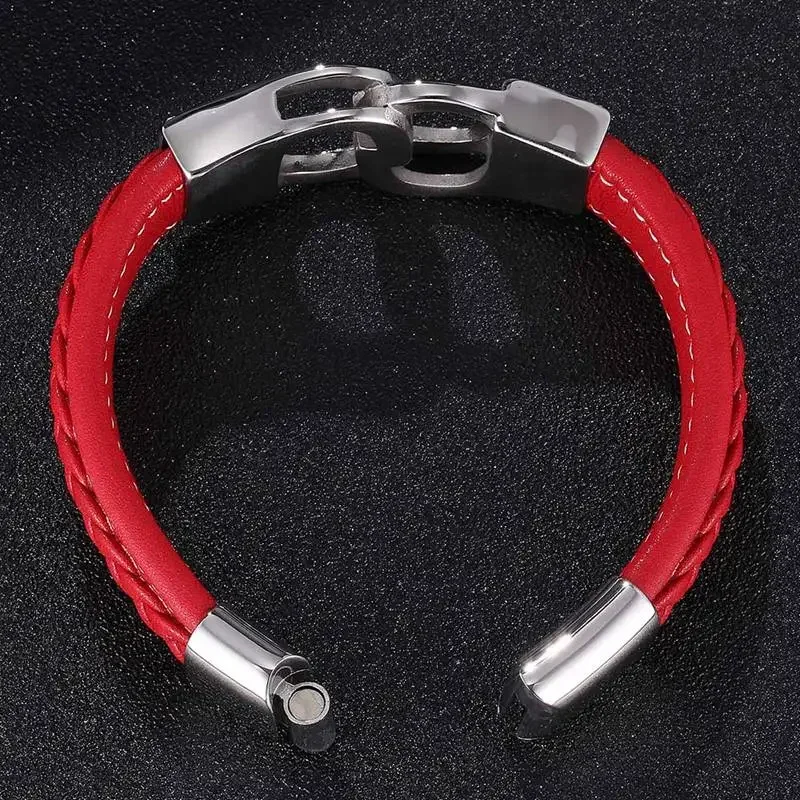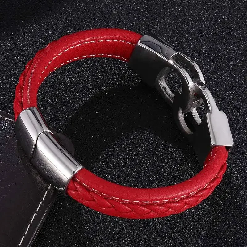 Ce bracelet en cuir tressé rouge est conçu pour un look punk et moderne. La texture du cuir apporte une touche sophistiquée et robuste. Le rouge éclatant souligne votre audace tout en ajoutant une note de caractère. Avec sa finition impeccable, ce bracelet est idéal pour rehausser vos tenues décontractées ou habillées.