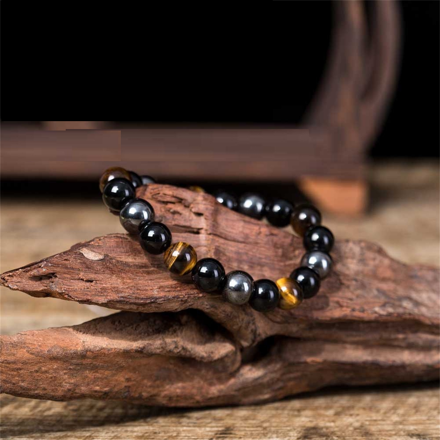 Pierres naturelles soigneusement sélectionnées. Assemblage robuste pour une durabilité optimale. Finitions impeccables respectant la beauté brute des minéraux. Un bracelet conçu pour durer.
