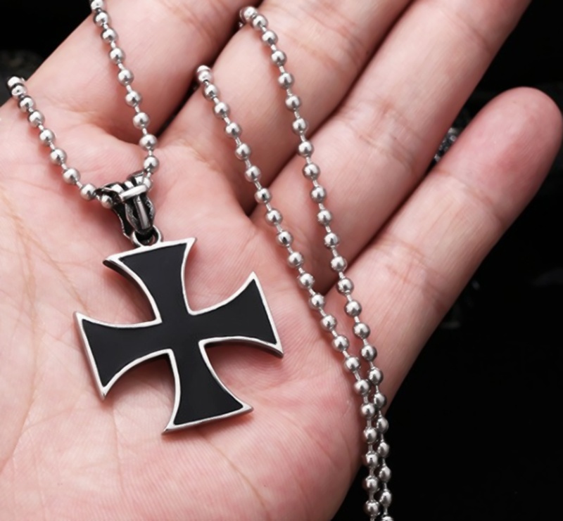 La croix de Malte, célèbre pour sa symbolique forte, se décline ici en noir, ajoutant une touche contemporaine qui attire inévitablement le regard. Cette chaîne croix pour homme est le choix parfait pour ceux qui désirent afficher leur personnalité unique avec assurance et style.