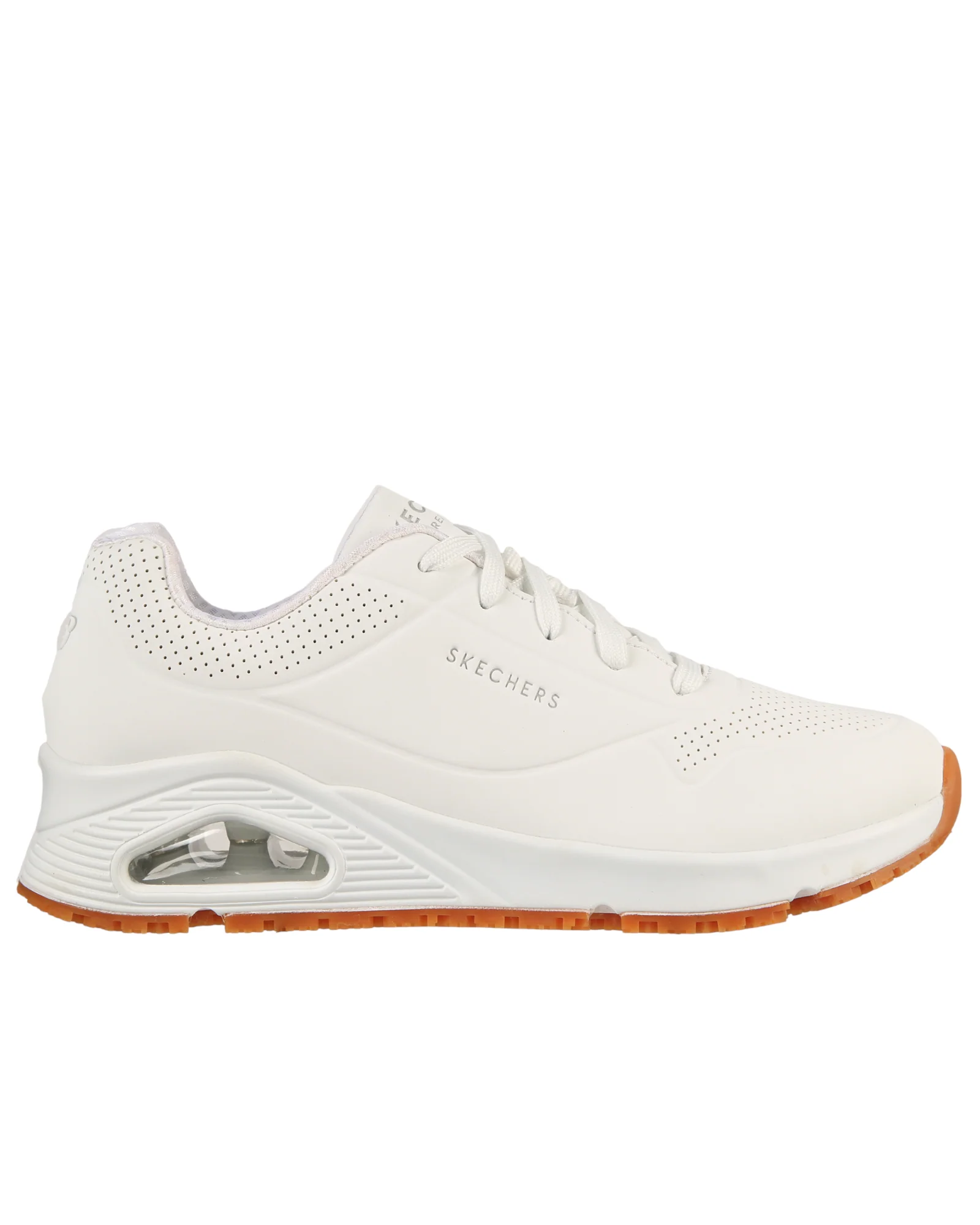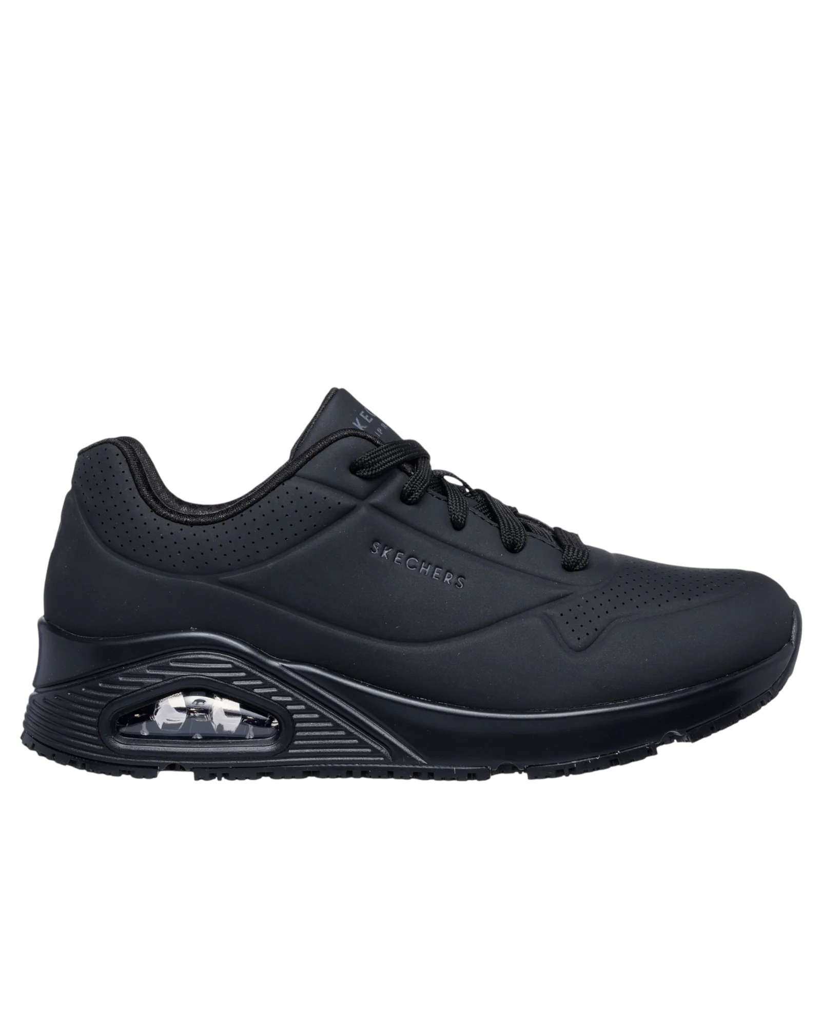 Une espadrille populaire gagne en confort et en sécurité avec la chaussure SKECHERS Work Relaxed Fit : Uno SR. Empeigne en tissu synthétique lisse et durable sur une espadrille richelieu de travail antidérapante à l’allure sportive et décontractée et à lacets, ornée de détails en relief et de perforations décoratives. Talon à coussin d’air, semelle intérieure Memory Foam.conception: