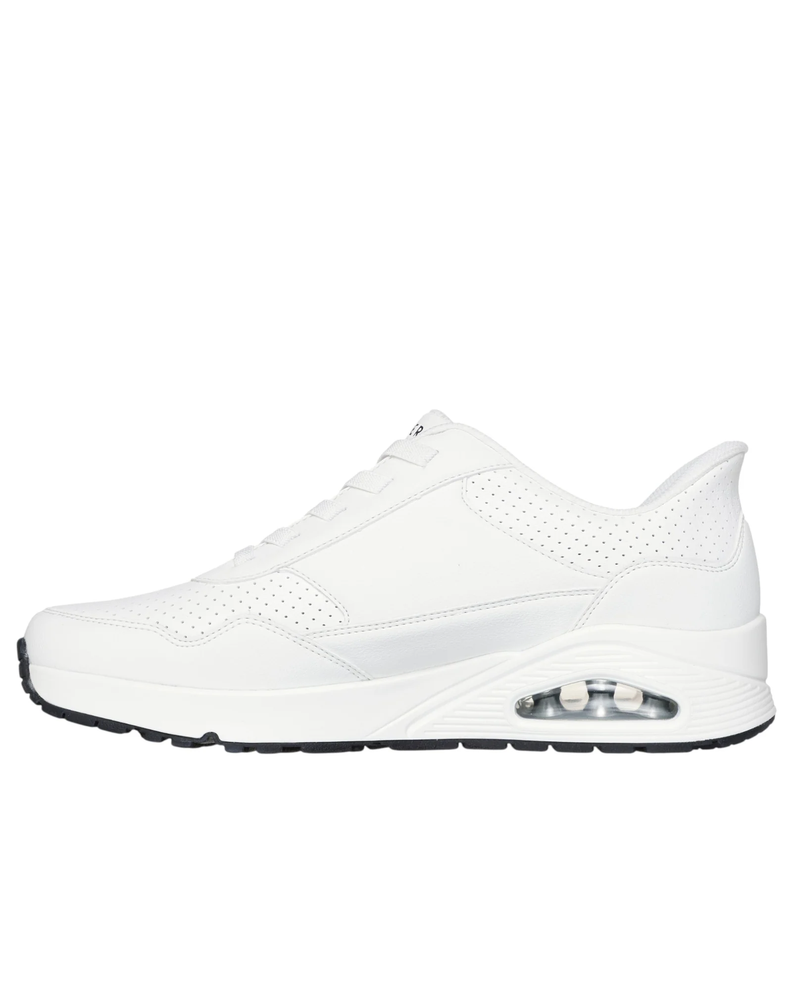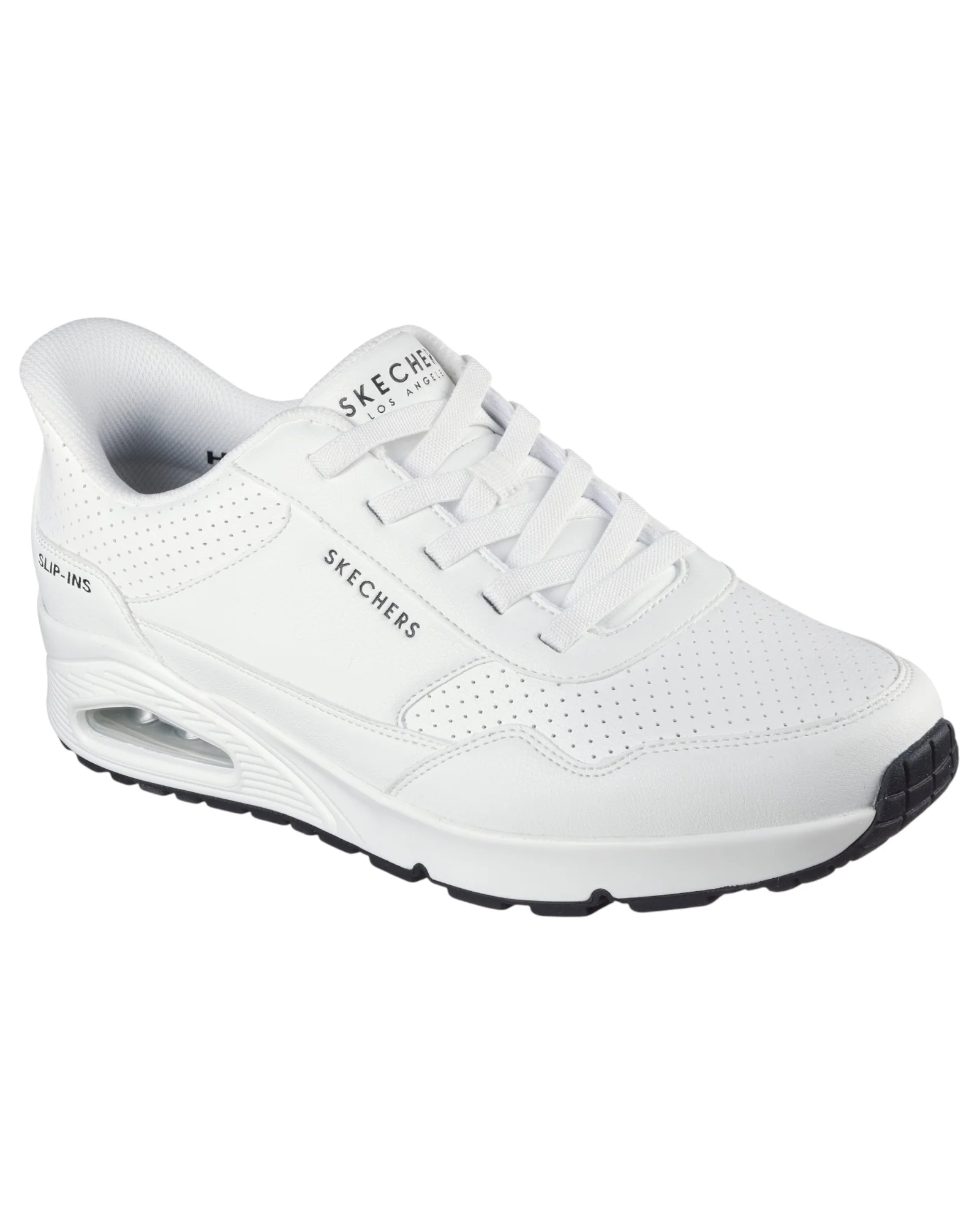 Adoptez un style sportif et un confort sans effort avec les Skechers Street™ Hands Free Slip-ins® : UNO – Banksia Luxe. Conçues avec notre technologie Heel Pillow®, ces chaussures à enfiler classiques et tendance sont dotées d’une tige en cuir durable avec des détails perforés, de lacets extensibles fixes, d’une semelle intérieure Skechers Air-Cooled Memory Foam® et d’une semelle intermédiaire Skech-Air® avec coussin d’air visible.